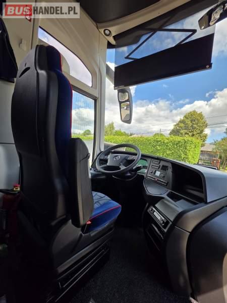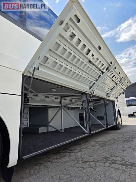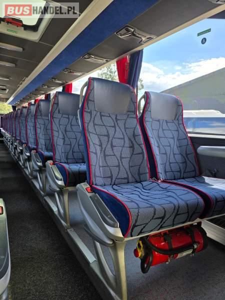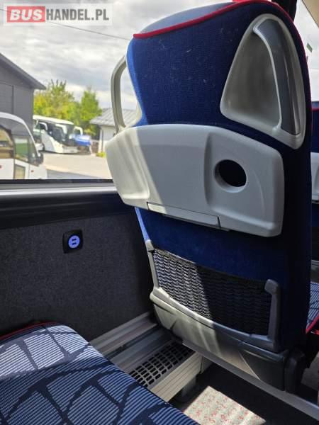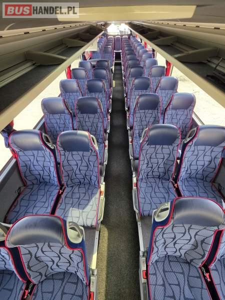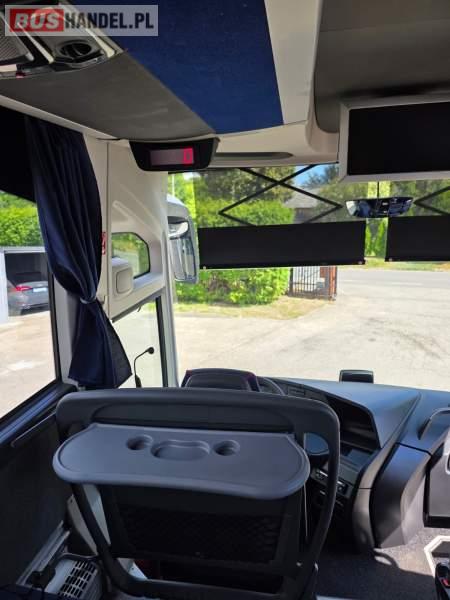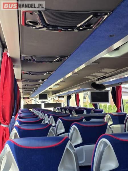 : WC, lodówka, kabina sypialna, oświetlenie indywidualne, nawiewy dyszowe, siateczki, ABS, ASR, tempomat, retarder, stoliczki, mikrofon, klimatyzacja, radio, sejf, regulacja wysokości nadwozia, centralny zamek, podwójne szyby boczne, wspomaganie kierownicy, elektryczne lusterka, fotele odchylane i rozsuwane, DVD, ogrzewanie stacjonarne, ESP