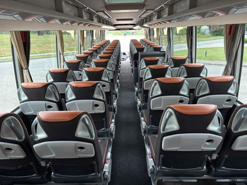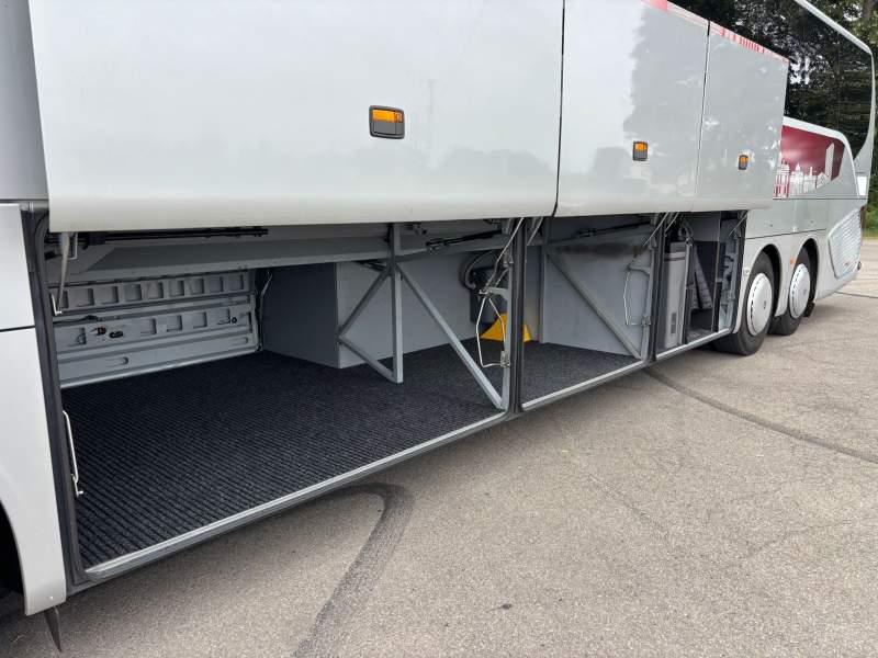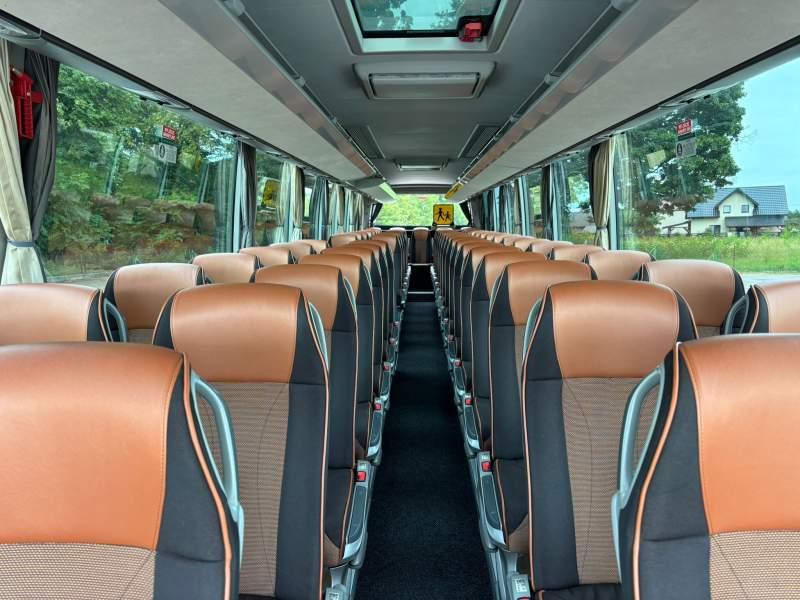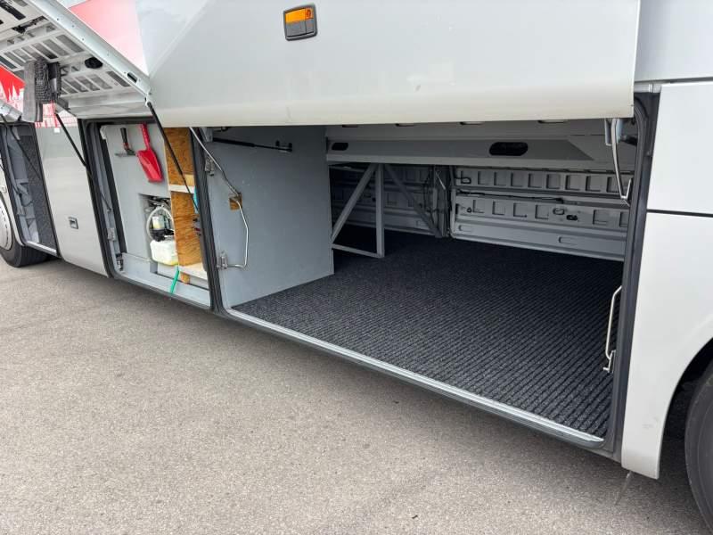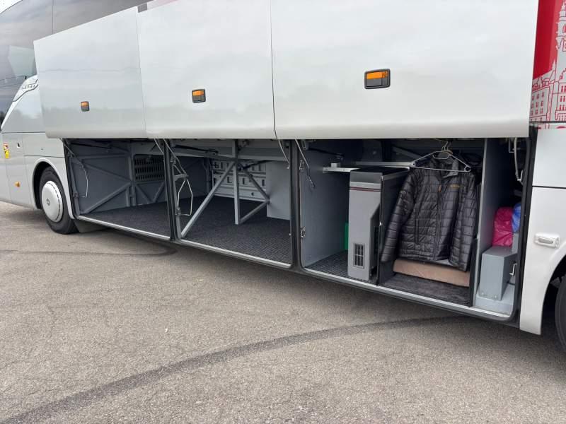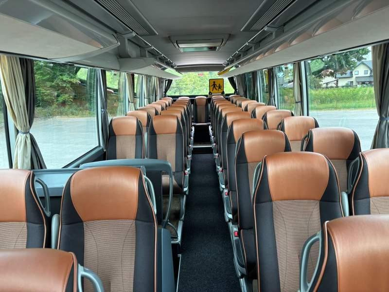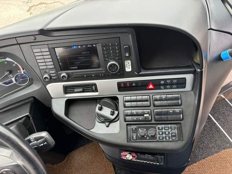 : WC, lodówka, caffebar, kabina sypialna, oświetlenie indywidualne, nawiewy dyszowe, siateczki, ABS, ASR, tempomat, retarder, nawigacja, CD, podnóżki, stoliczki, mikrofon, klimatyzacja, radio, sejf, regulacja wysokości nadwozia, centralny zamek, podwójne szyby boczne, wspomaganie kierownicy, elektryczne lusterka, fotele odchylane i rozsuwane, ogrzewanie stacjonarne, ESP