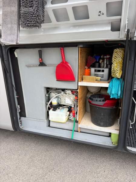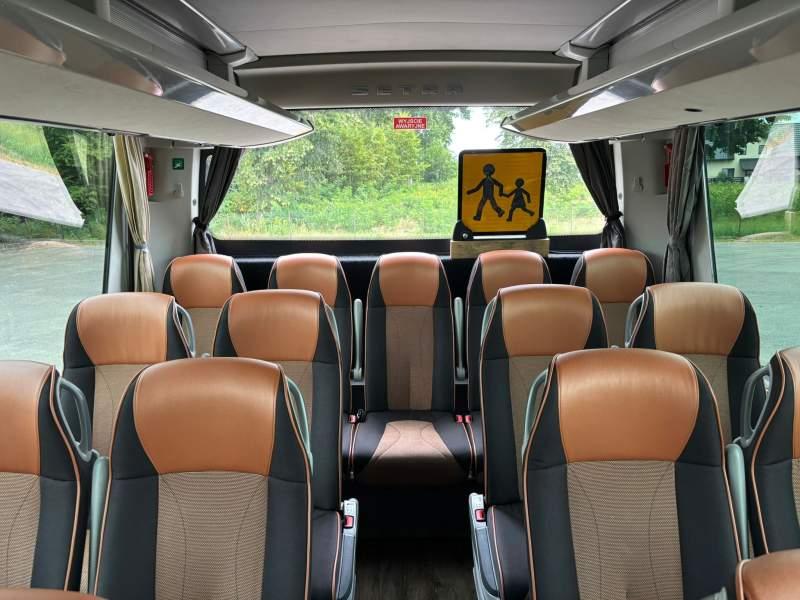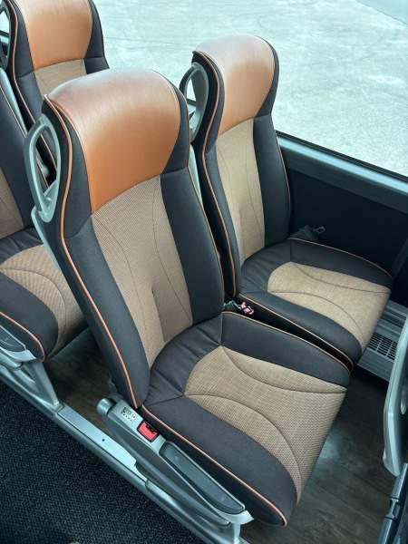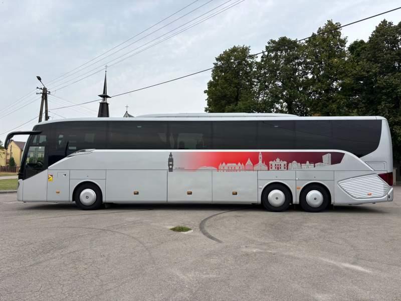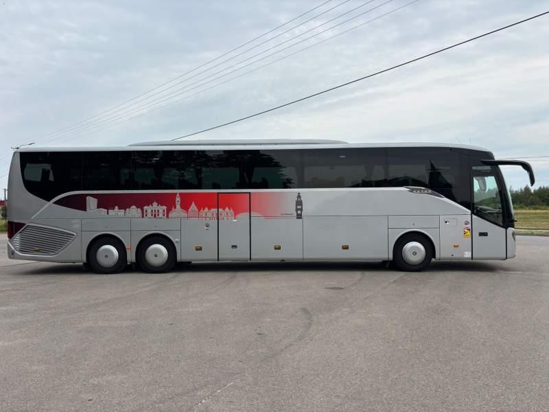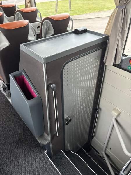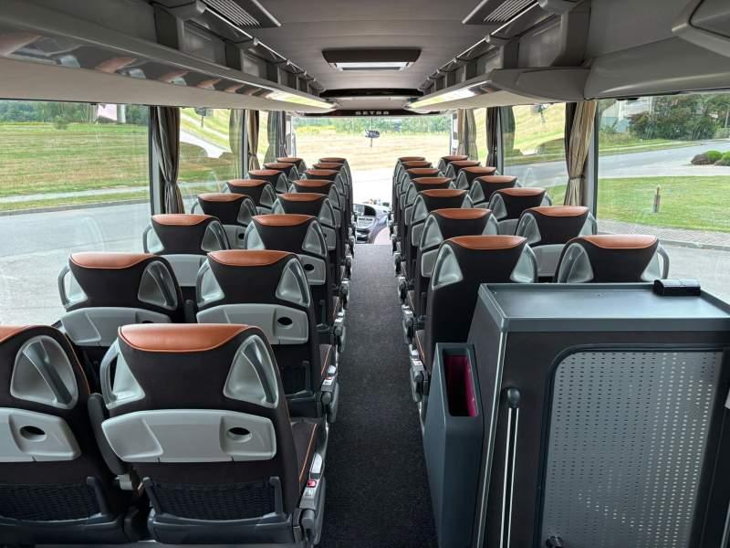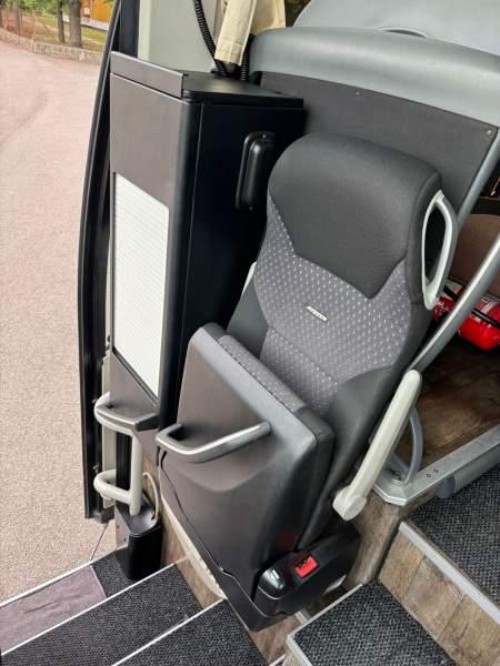 : WC, lodówka, caffebar, kabina sypialna, oświetlenie indywidualne, nawiewy dyszowe, siateczki, ABS, ASR, tempomat, retarder, nawigacja, CD, podnóżki, stoliczki, mikrofon, klimatyzacja, radio, sejf, regulacja wysokości nadwozia, centralny zamek, podwójne szyby boczne, wspomaganie kierownicy, elektryczne lusterka, fotele odchylane i rozsuwane, ogrzewanie stacjonarne, ESP