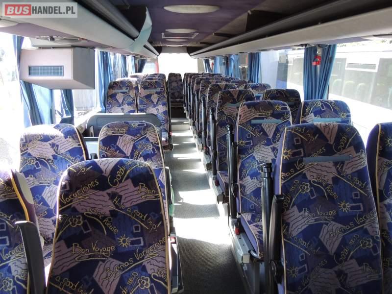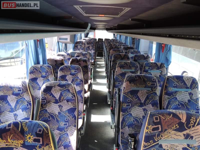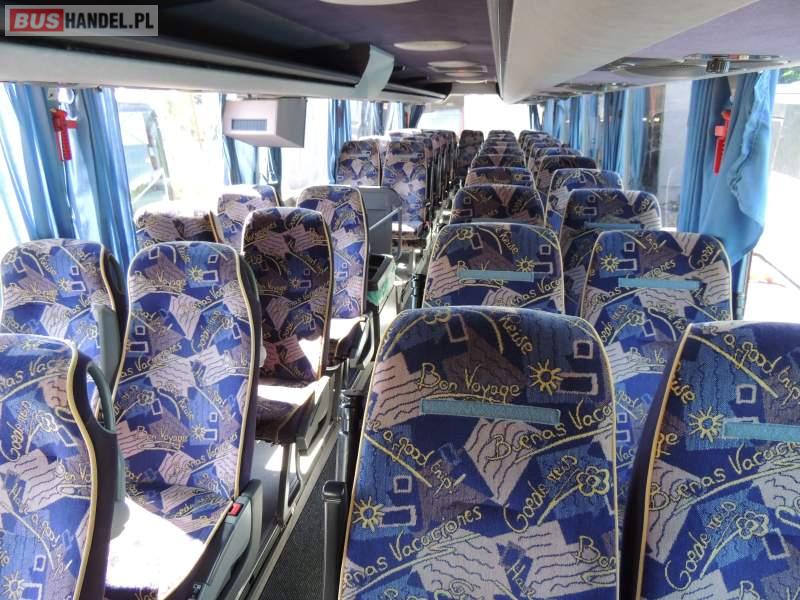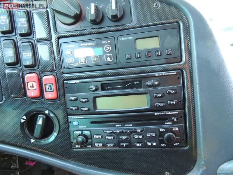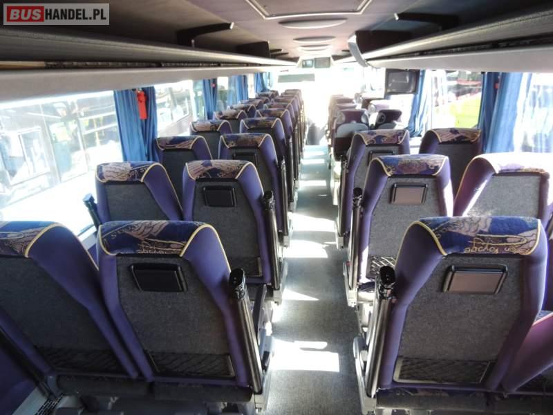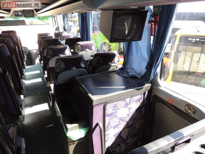 : video, WC, lodówka, kabina sypialna, fotele odchylane, oświetlenie indywidualne, nawiewy dyszowe, ABS, ASR, tempomat, retarder, CD, mikrofon, klimatyzacja, radio, regulacja wysokości nadwozia, centralny zamek, podwójne szyby boczne, wspomaganie kierownicy, elektryczne lusterka, DVD, ogrzewanie stacjonarne