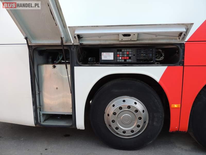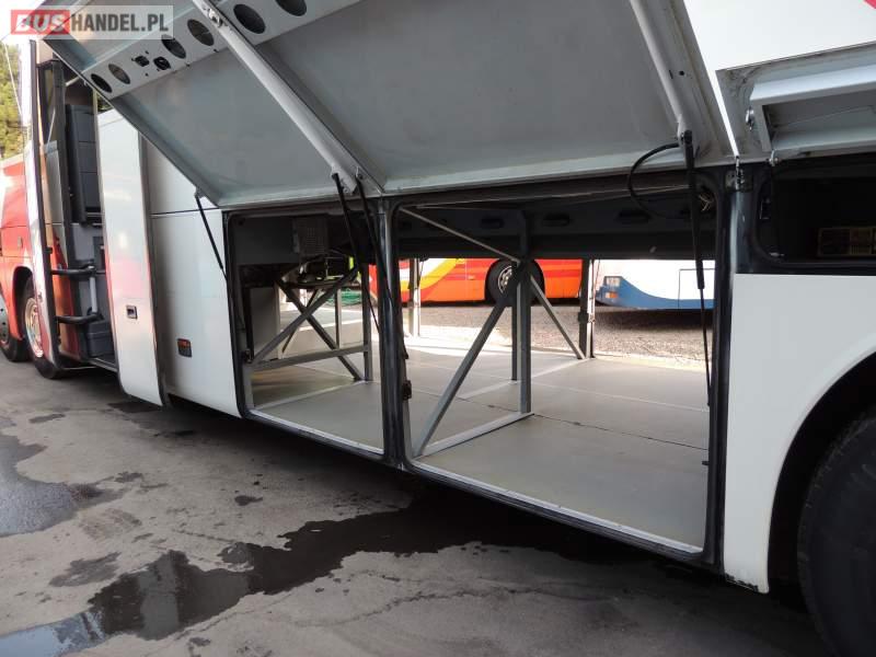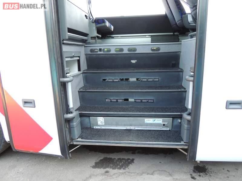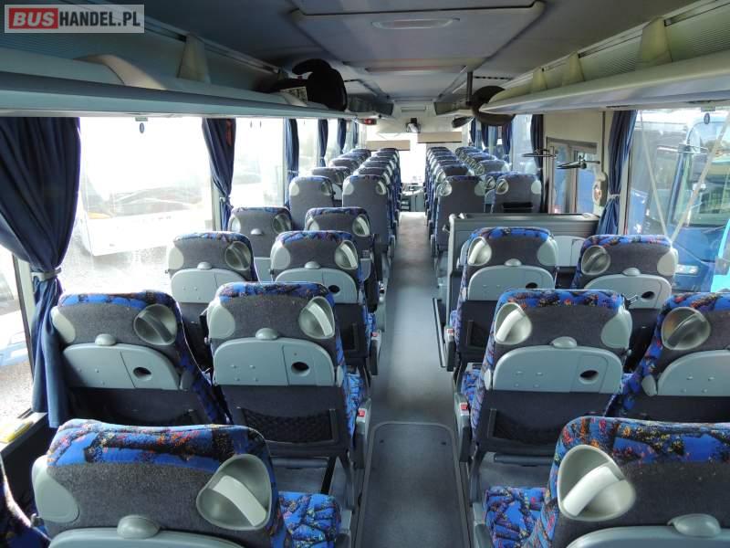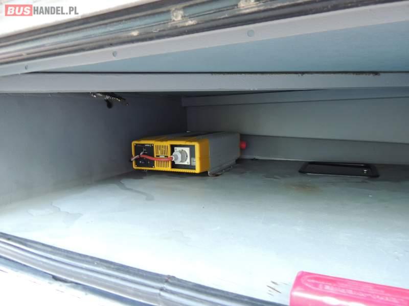 : klimatyzacja, video, WC, lodówka, caffebar, oświetlenie indywidualne, nawiewy dyszowe, ABS, ASR, tempomat, retarder, CD, mikrofon, radio, fotele odchylane i rozsuwane, rampa dla inwalidów, regulacja wysokości nadwozia, centralny zamek, podwójne szyby boczne, wspomaganie kierownicy, elektryczne lusterka, ogrzewanie stacjonarne, DVD