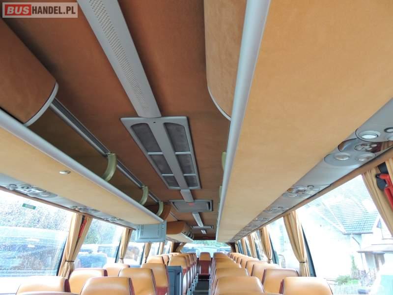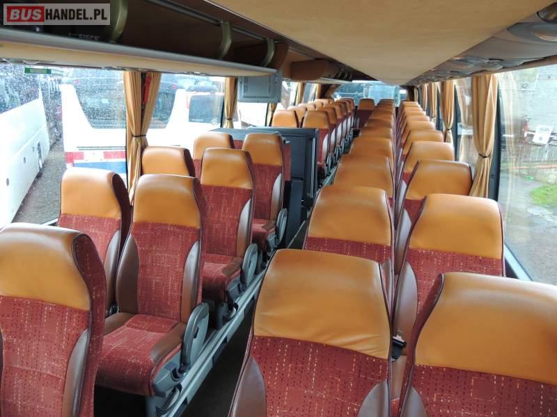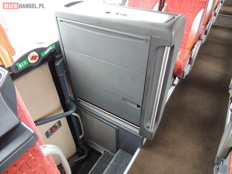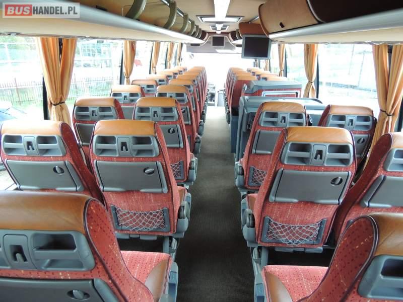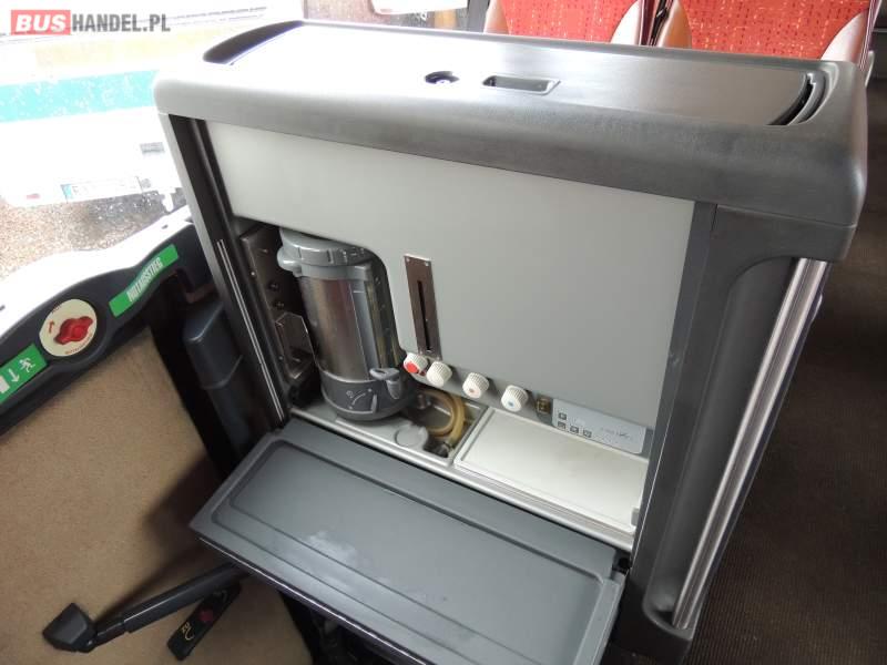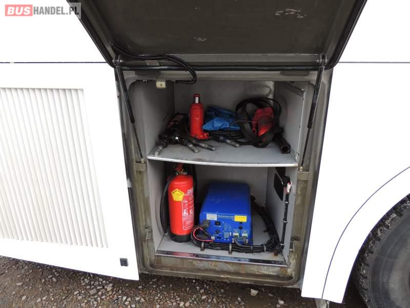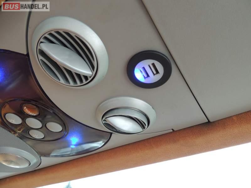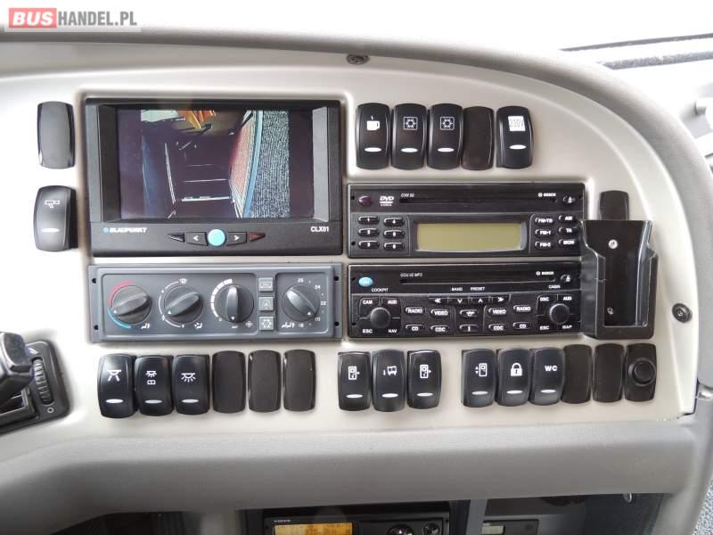 : video, WC, lodówka, caffebar, oświetlenie indywidualne, nawiewy dyszowe, ABS, ASR, tempomat, retarder, CD, podnóżki, mikrofon, klimatyzacja, radio, regulacja wysokości nadwozia, centralny zamek, podwójne szyby boczne, wspomaganie kierownicy, elektryczne lusterka, fotele odchylane i rozsuwane, DVD, ogrzewanie stacjonarne, ESP