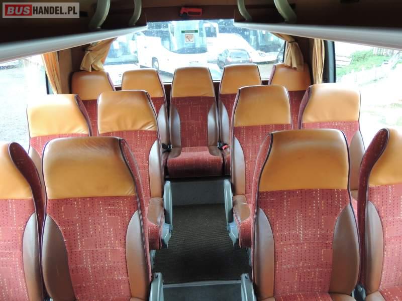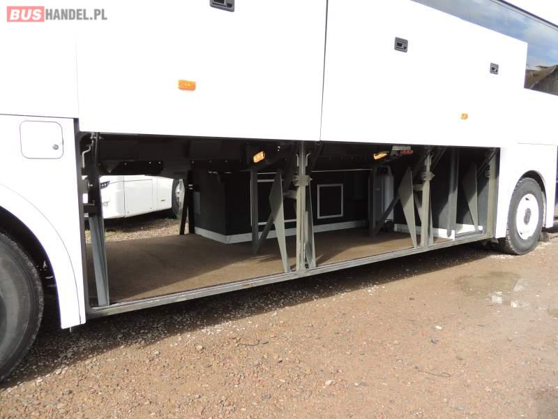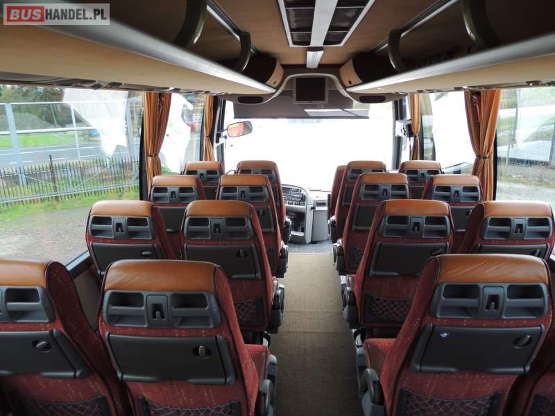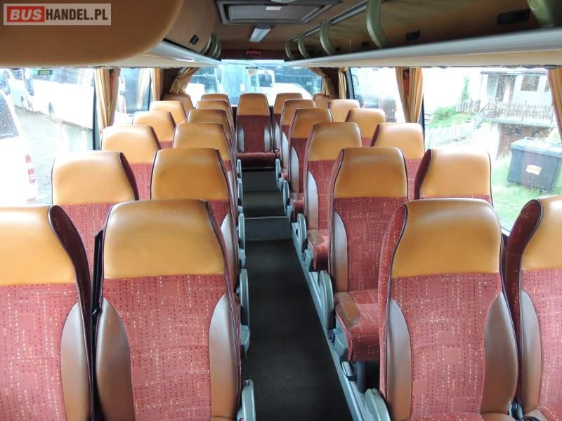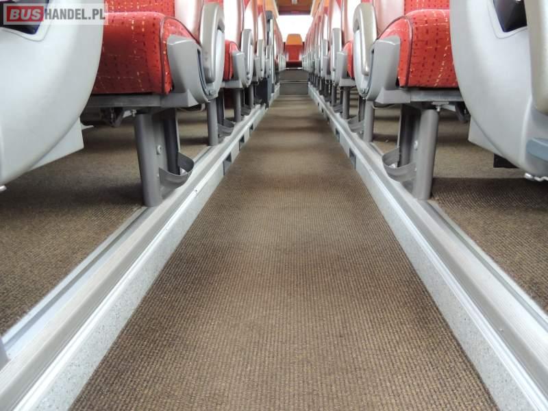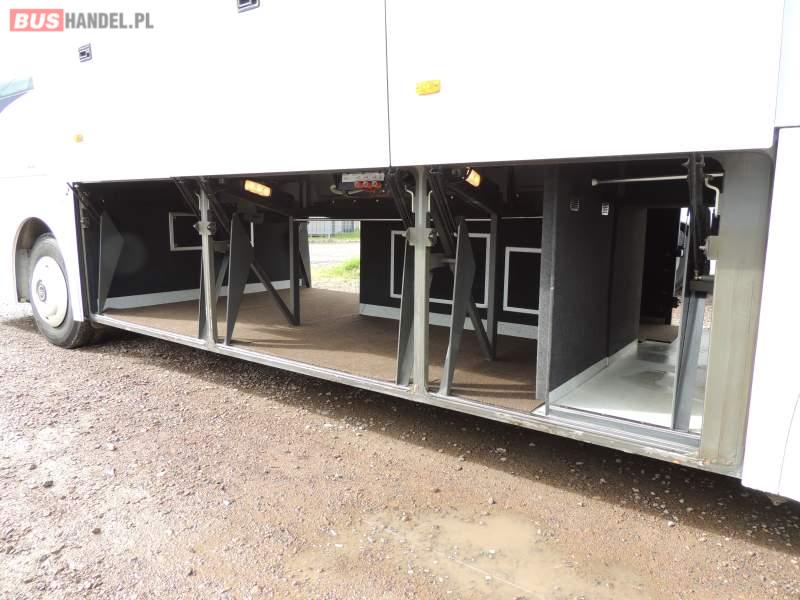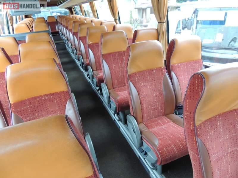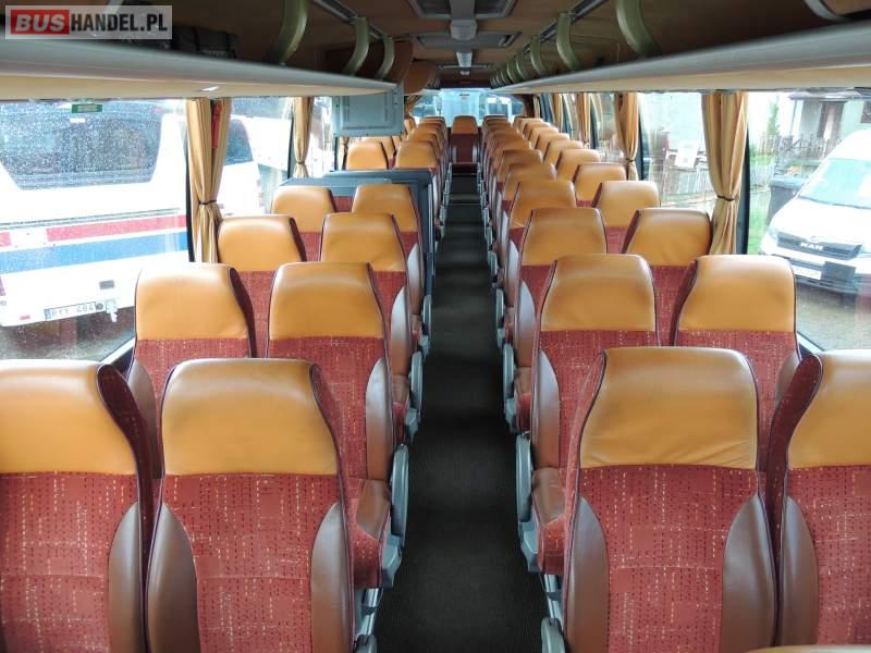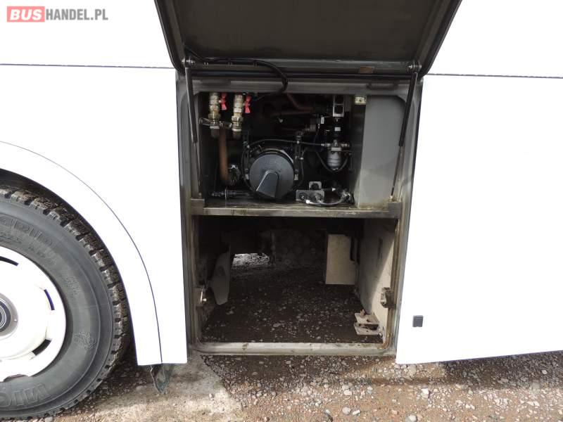 : video, WC, lodówka, caffebar, oświetlenie indywidualne, nawiewy dyszowe, ABS, ASR, tempomat, retarder, CD, podnóżki, mikrofon, klimatyzacja, radio, regulacja wysokości nadwozia, centralny zamek, podwójne szyby boczne, wspomaganie kierownicy, elektryczne lusterka, fotele odchylane i rozsuwane, DVD, ogrzewanie stacjonarne, ESP