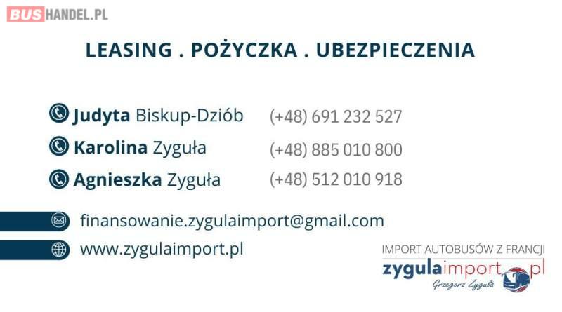 MERCEDES SPRINTER TRANSFER 35 Sprowadzony z Francji - Udokumentowany przebieg - Pojazd w pełni przygotowany do rejestracji - Euro 6 - 17 miejsc siedzących - Możliwość rejestracji na 23 miejsca siedzące - Elektryczne drzwi - Klimatyzacja dla kierowcy I pasażerów - Kamera cofania - Długość: 6. 96 m Nasza firma zajmuje się sprzedażą importowanych autobusów i busów z Francji. W naszej ofercie znajdą Państwo szeroki wybór autobusów turystycznych, szkolnych, miejskich, międzymiastowych, busów i minibusów wszystkich marek. Na naszym placu jest blisko 200 sztuk pojazdów. Sprowadzamy autobusy o konkretnej specyfikacji na życzenie klienta. Pomagamy w uzyskaniu finansowania leasingiem lub kredytem. Wszystkie dostępne autobusy znajdą Państwo na naszej stronie internetowej: www. zygulaimport. pl Siedziba firmy: ul. Wolności 3, 26-010 Bodzentyn Pracujemy od poniedziałku do piątku w godzinach: 8. 00 – 18. 00 w sobotę w godzinach: 8. 00 – 14. 00 w niedzielę: kontakt telefoniczny Grzegorz Zyguła : +48 570 570 666 Sławomir Zyguła: +48 603 631 536 Biuro: Judyta Biskup – Dziób: + 48 691 232 527 e-mail: puhzygula@onet. pl Finansowanie: Agnieszka Zyguła +48 512 010 918 Judyta Biskup – Dziób: + 48 691 232 527 Karolina Zyguła: +48 885 010 800 e-mail: finansowanie. zygulaimport@gmail. com Ubezpieczenia: Agnieszka Zyguła +48 512 010 918 e-mail: a. zygula. 2@gmail. com Sprzedający: