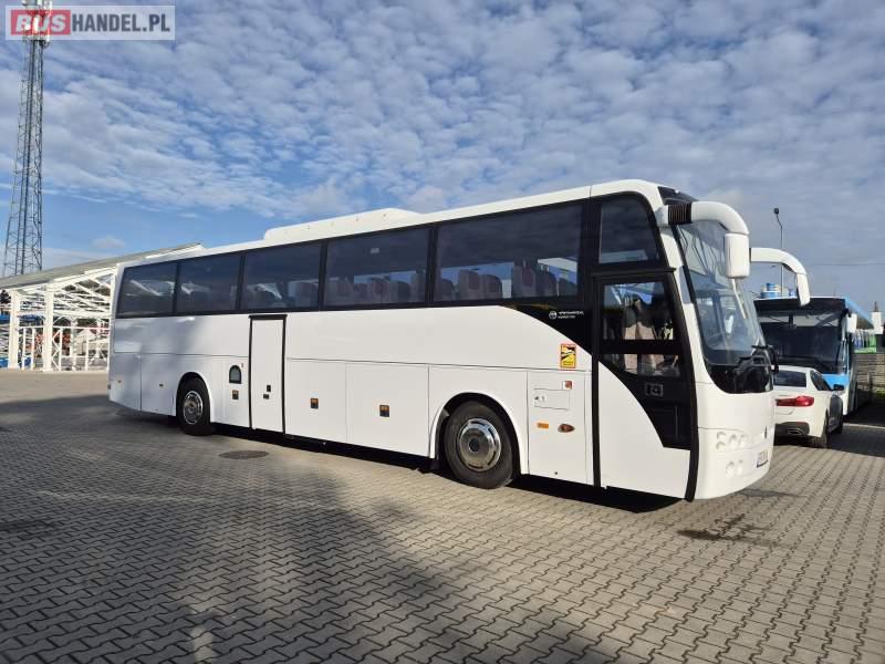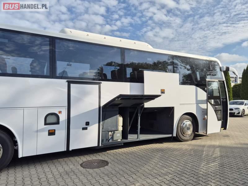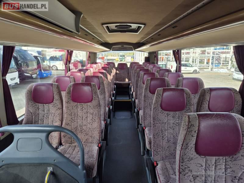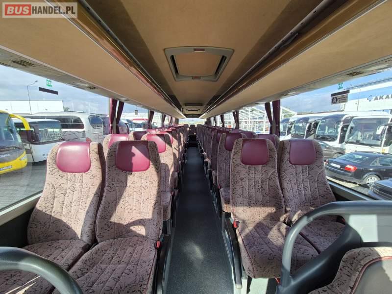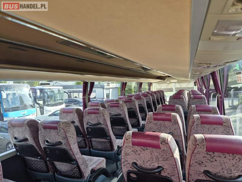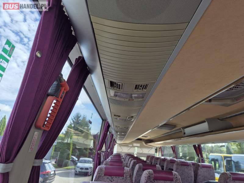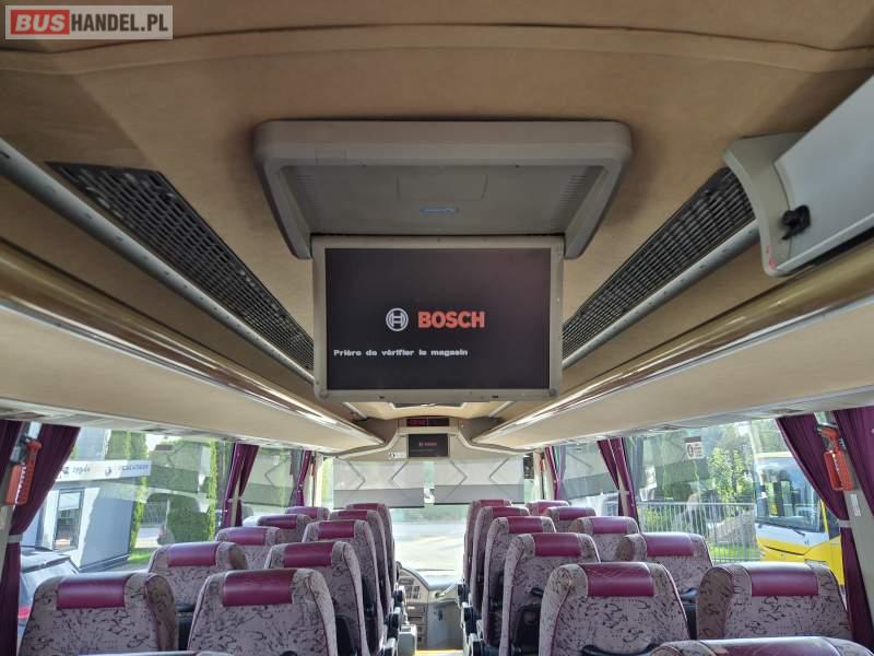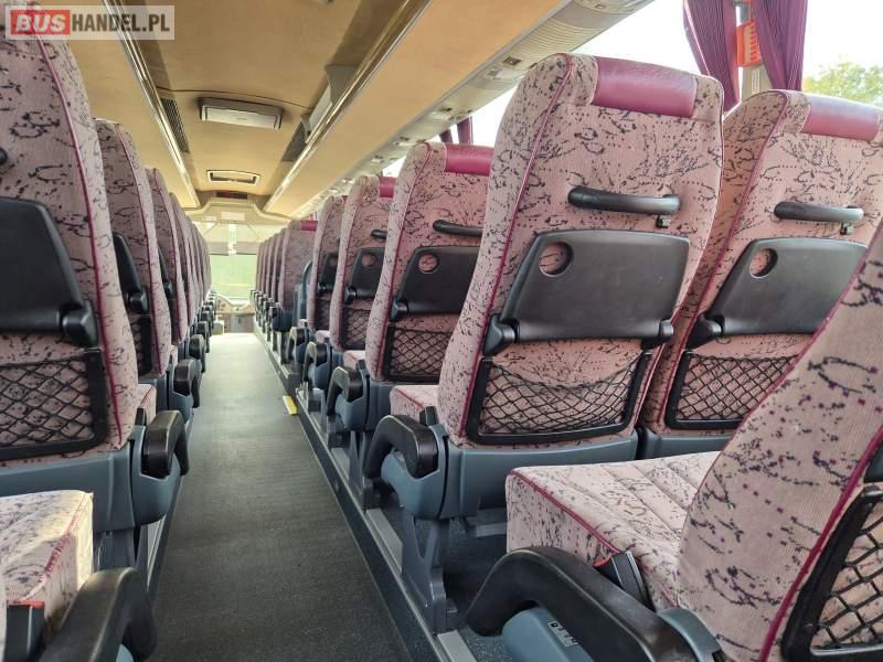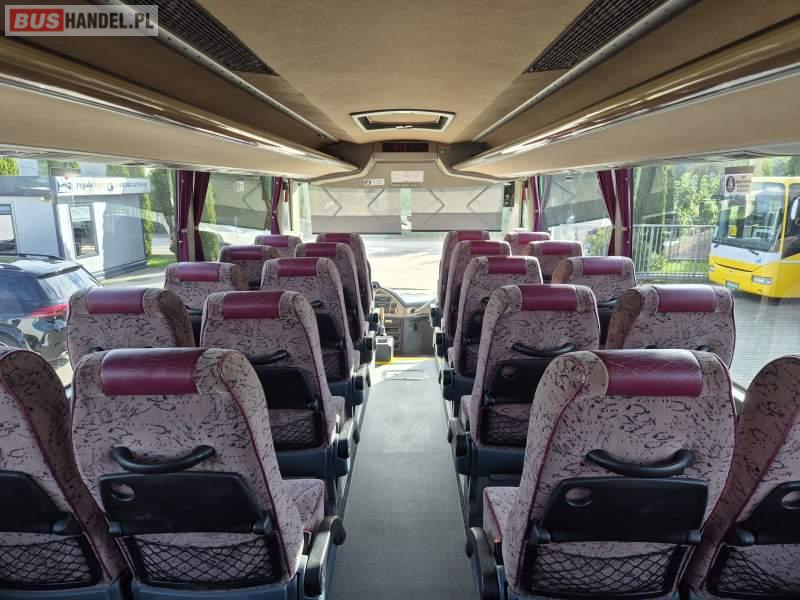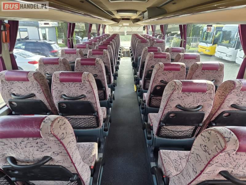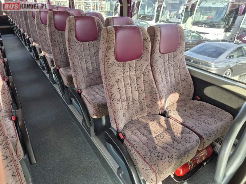 : klimatyzacja, video, WC, lodówka, oświetlenie indywidualne, fotele odchylane, podnóżki, stoliczki, siateczki, ABS, retarder, mikrofon, radio, regulacja wysokości nadwozia, centralny zamek, podwójne szyby boczne, wspomaganie kierownicy, elektryczne lusterka, ogrzewanie stacjonarne, DVD