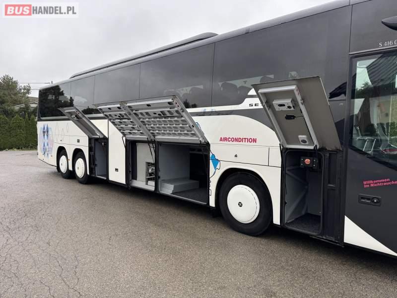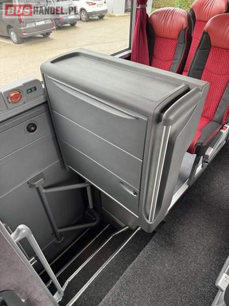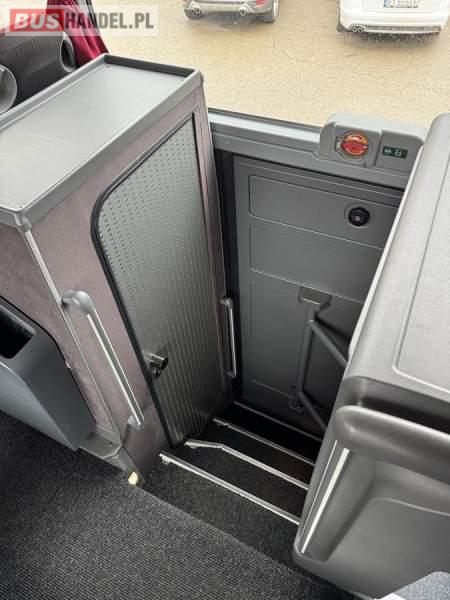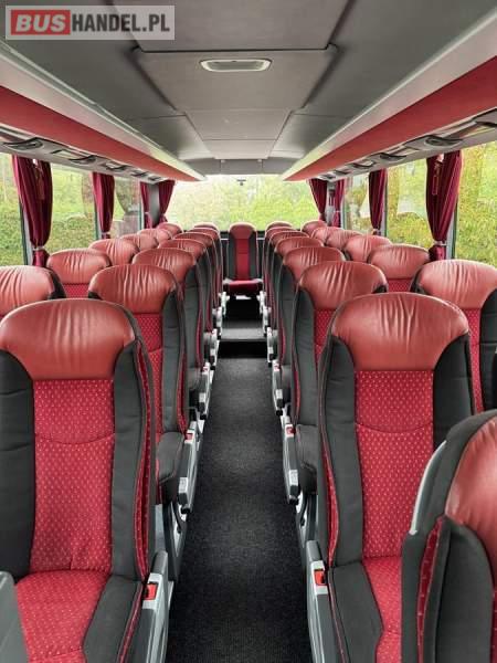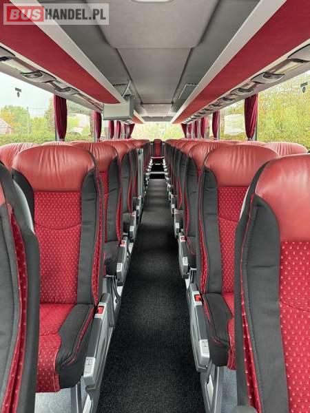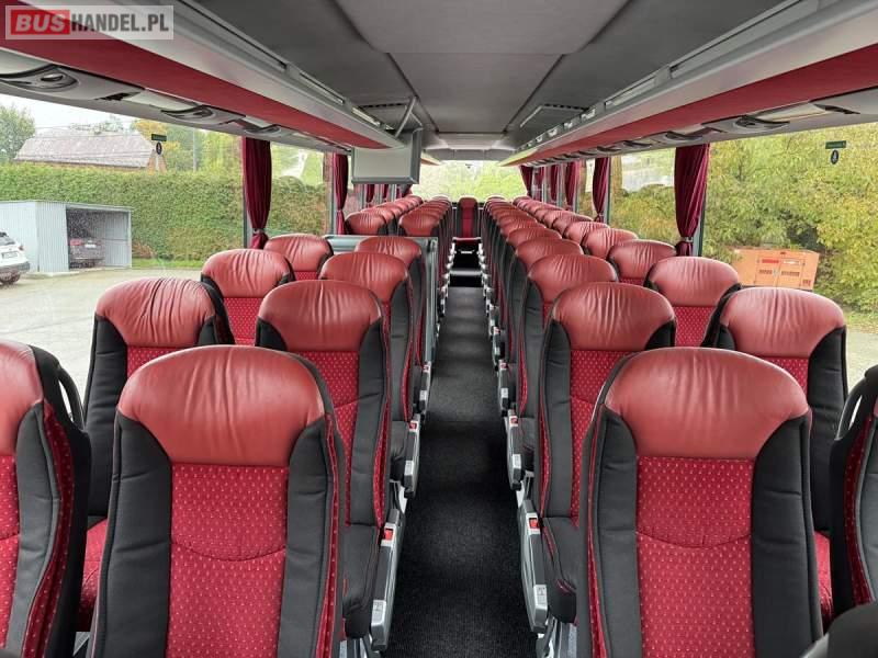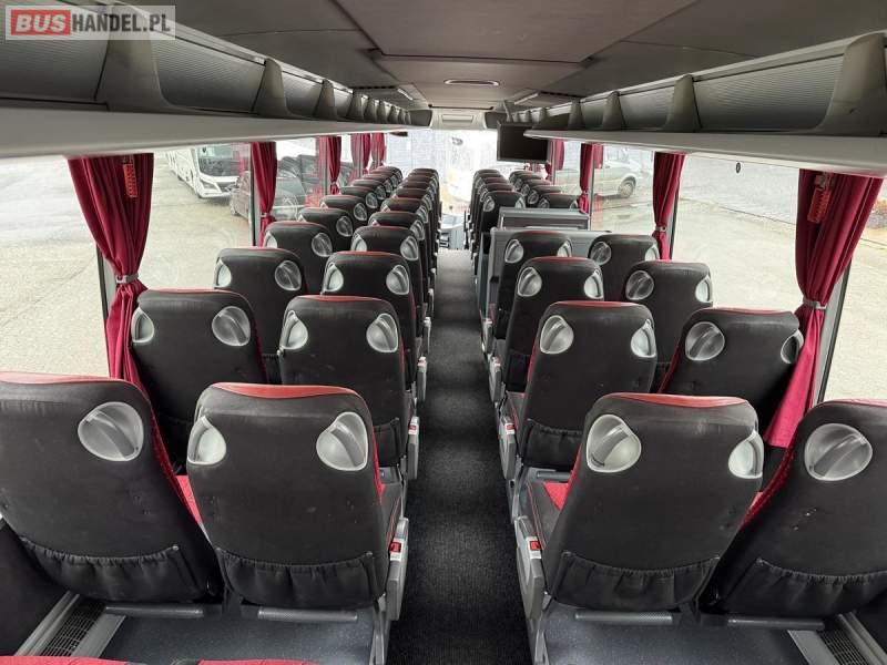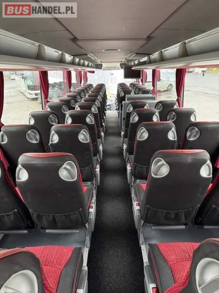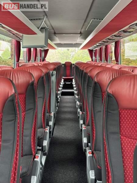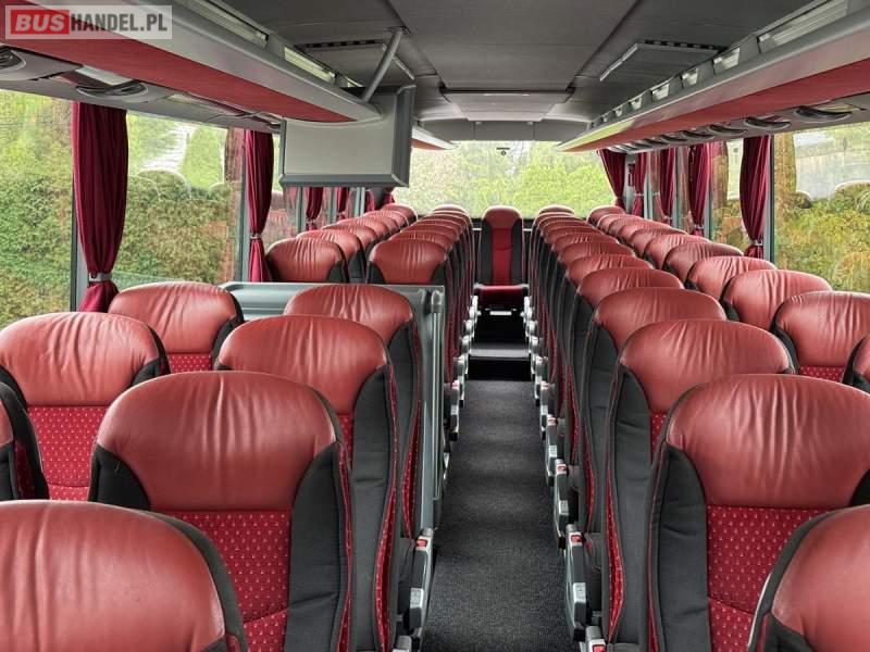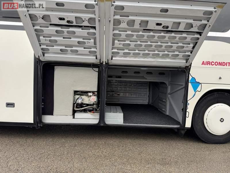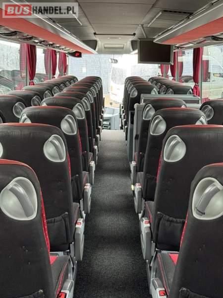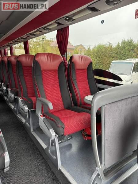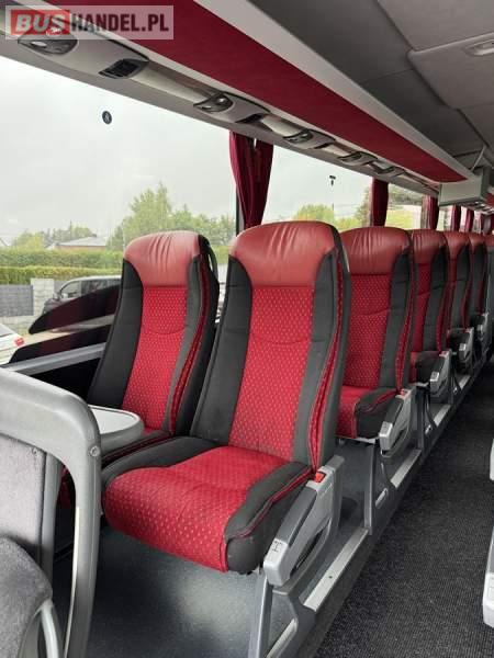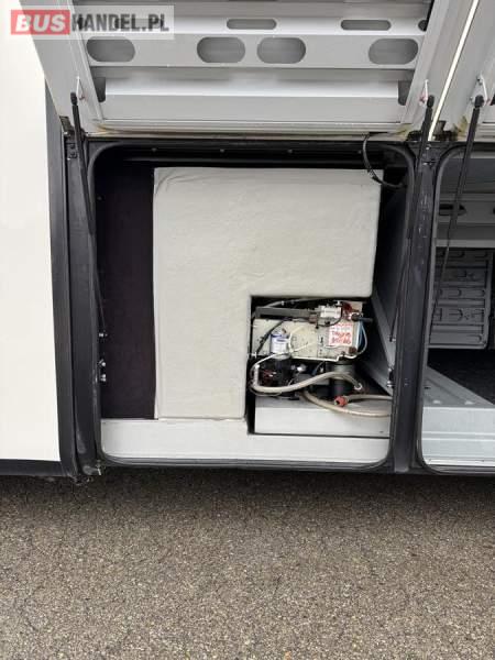 : klimatyzacja, WC, lodówka, caffebar, oświetlenie indywidualne, nawiewy dyszowe, fotele odchylane, podnóżki, stoliczki, siateczki, ABS, ASR, tempomat, retarder, CD, mikrofon, radio, wyświetlacz matrix, regulacja wysokości nadwozia, centralny zamek, podwójne szyby boczne, wspomaganie kierownicy, elektryczne lusterka, ogrzewanie stacjonarne, DVD, ESP
