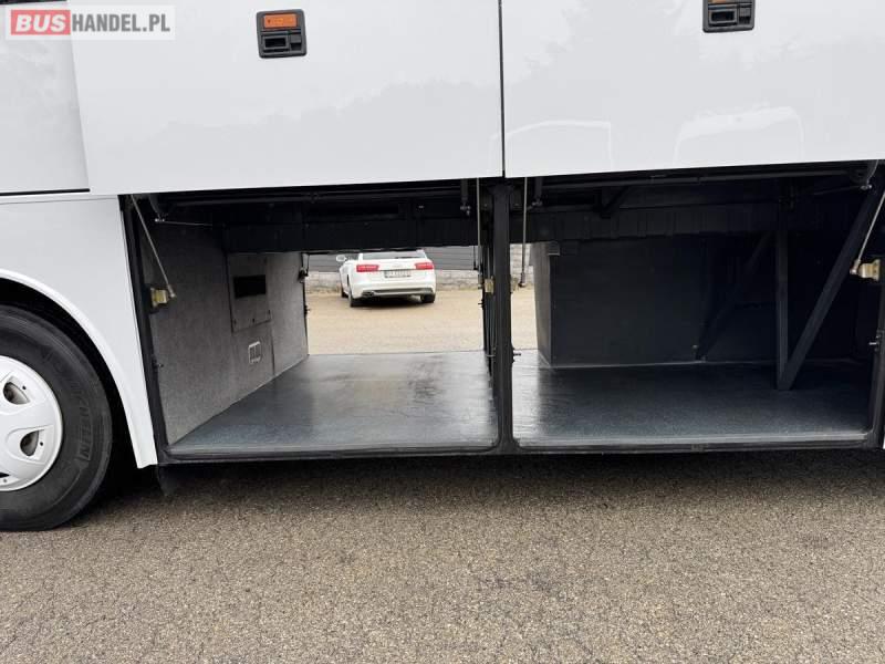 : klimatyzacja, WC, lodówka, oświetlenie indywidualne, nawiewy dyszowe, fotele odchylane, podnóżki, ABS, ASR, tempomat, retarder, CD, mikrofon, radio, regulacja wysokości nadwozia, centralny zamek, podwójne szyby boczne, wspomaganie kierownicy, elektryczne lusterka, ogrzewanie stacjonarne, DVD