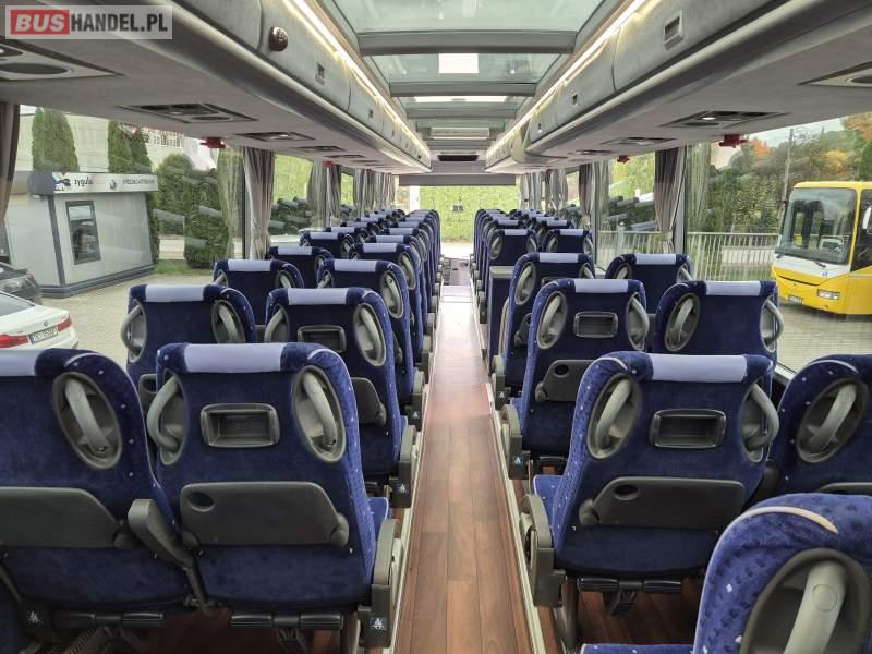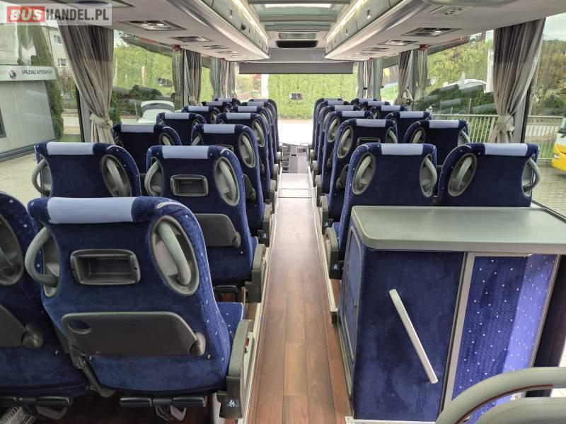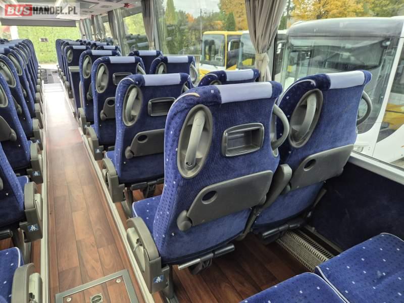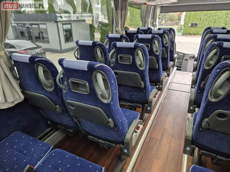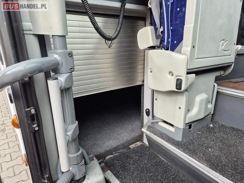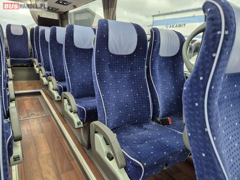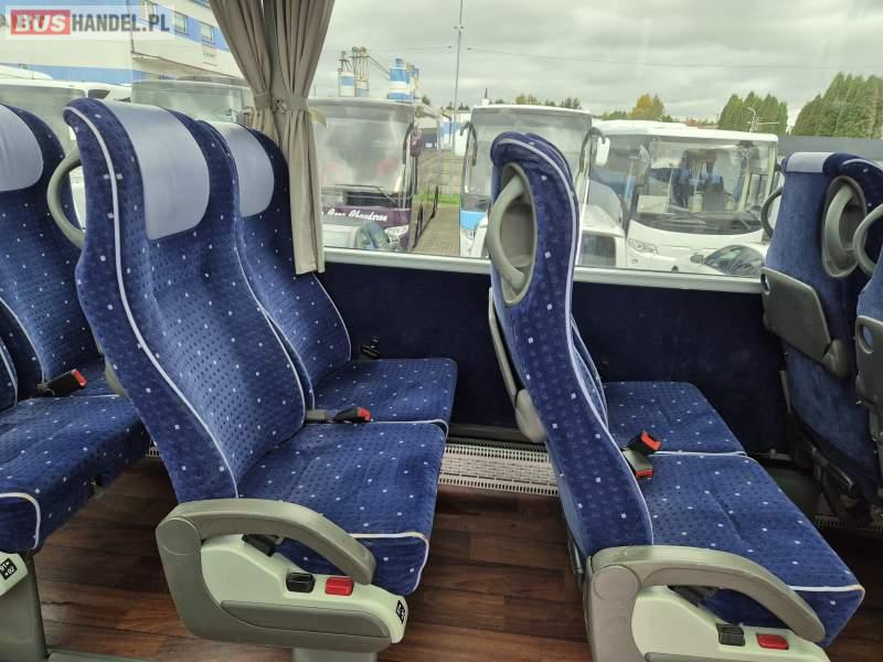 : klimatyzacja, video, WC, lodówka, kabina sypialna, oświetlenie indywidualne, fotele odchylane, podnóżki, stoliczki, siateczki, ABS, tempomat, retarder, CD, mikrofon, radio, regulacja wysokości nadwozia, centralny zamek, podwójne szyby boczne, wspomaganie kierownicy, elektryczne lusterka, ogrzewanie stacjonarne, DVD