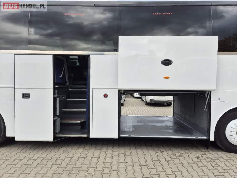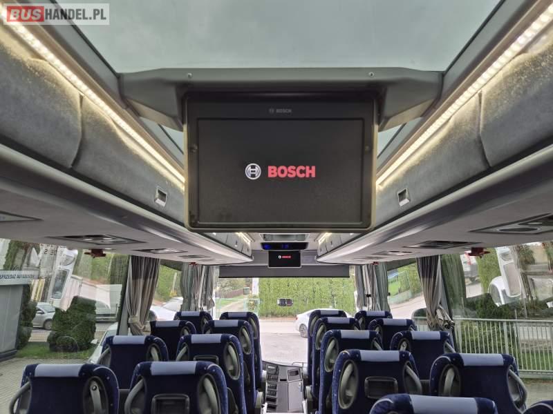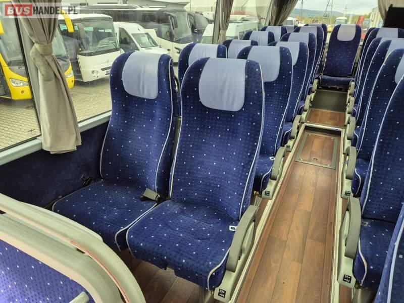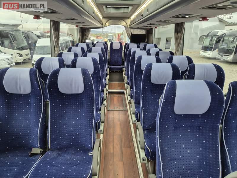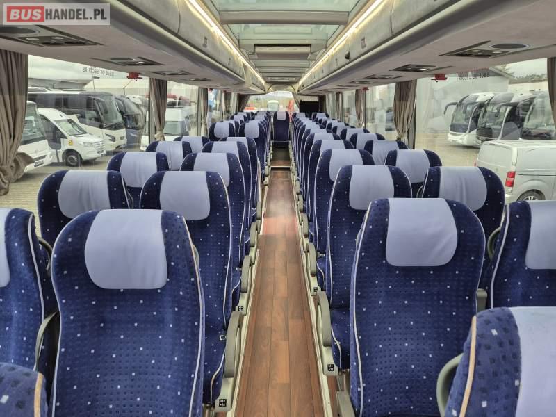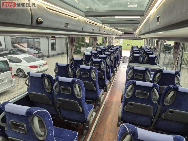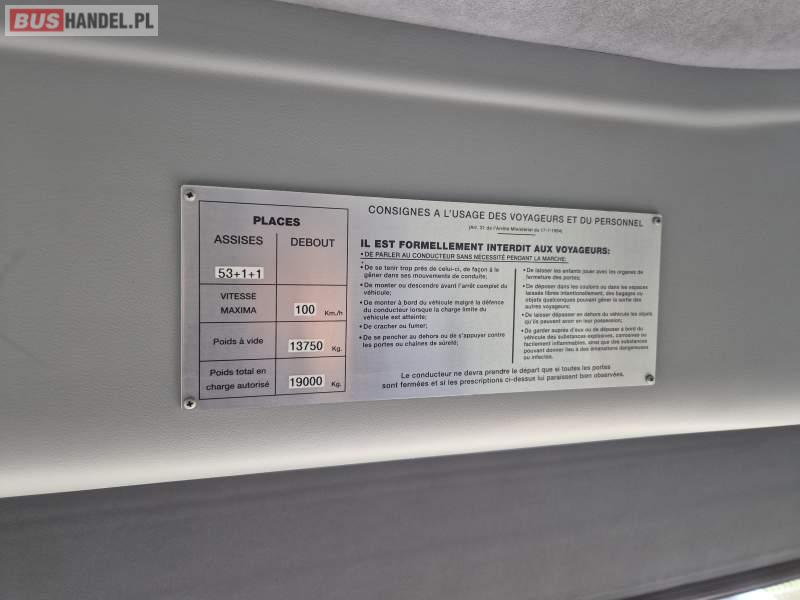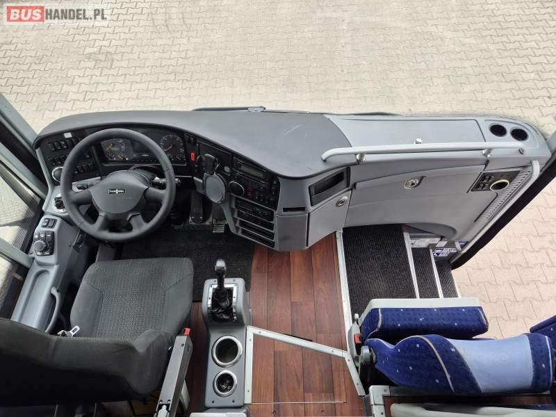: klimatyzacja, video, WC, lodówka, kabina sypialna, oświetlenie indywidualne, fotele odchylane, podnóżki, stoliczki, siateczki, ABS, tempomat, retarder, CD, mikrofon, radio, regulacja wysokości nadwozia, centralny zamek, podwójne szyby boczne, wspomaganie kierownicy, elektryczne lusterka, ogrzewanie stacjonarne, DVD