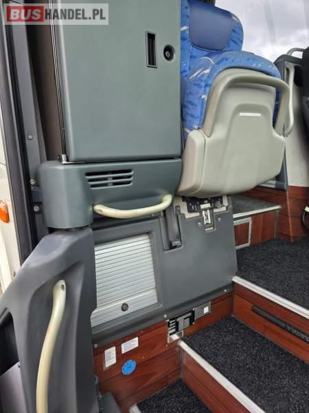 : klimatyzacja, WC, lodówka, oświetlenie indywidualne, nawiewy dyszowe, fotele odchylane, podnóżki, stoliczki, siateczki, ABS, ASR, tempomat, retarder, CD, mikrofon, radio, regulacja wysokości nadwozia, centralny zamek, podwójne szyby boczne, wspomaganie kierownicy, elektryczne lusterka, ogrzewanie stacjonarne, DVD, ESP