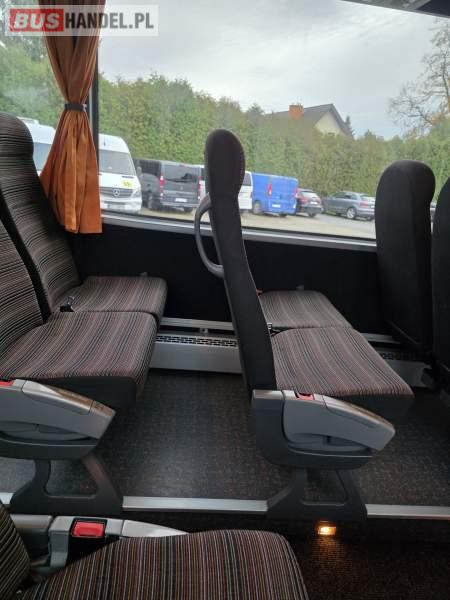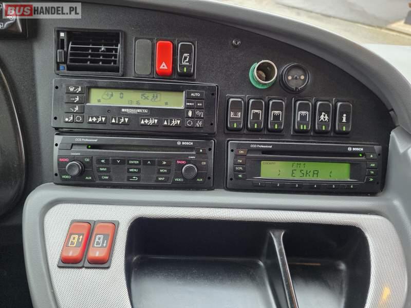 : klimatyzacja, lodówka, oświetlenie indywidualne, nawiewy dyszowe, fotele odchylane, podnóżki, stoliczki, siateczki, ABS, ASR, tempomat, retarder, mikrofon, sejf, regulacja wysokości nadwozia, centralny zamek, podwójne szyby boczne, wspomaganie kierownicy, elektryczne lusterka, ogrzewanie stacjonarne, DVD