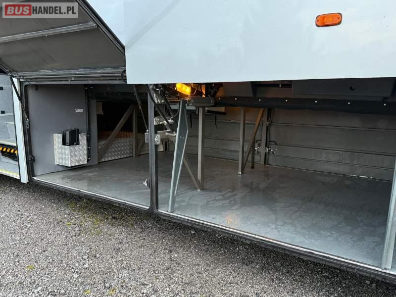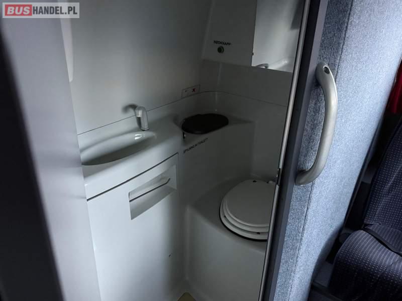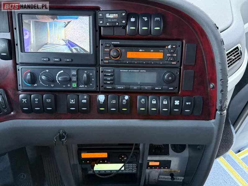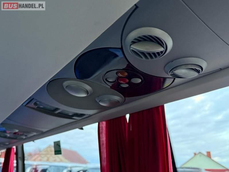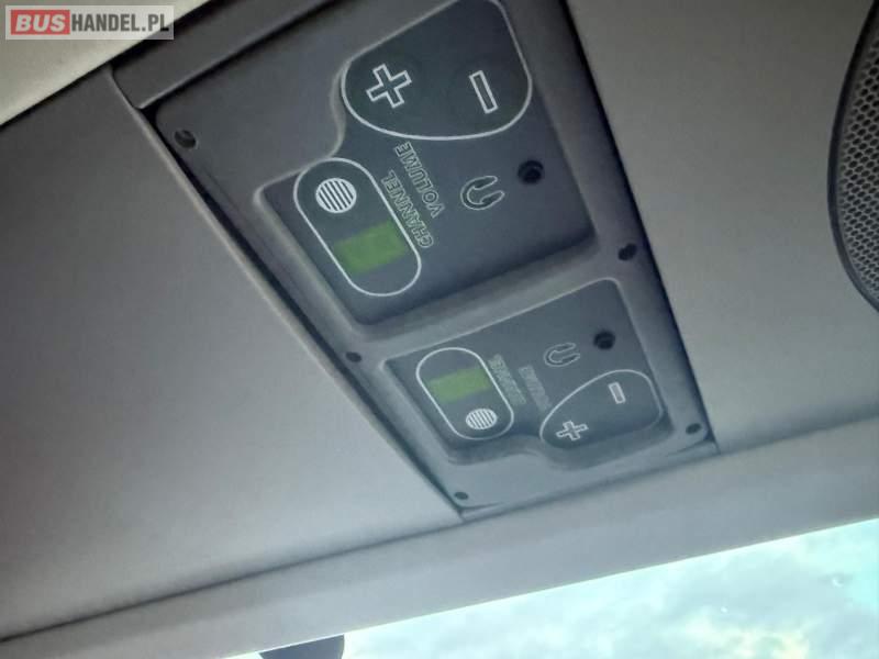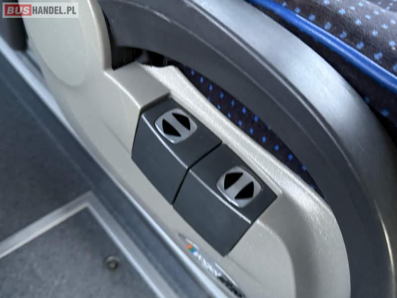 : klimatyzacja, video, WC, caffebar, oświetlenie indywidualne, nawiewy dyszowe, podnóżki, stoliczki, siateczki, ABS, ASR, tempomat, retarder, CD, mikrofon, radio, fotele odchylane i rozsuwane, rampa dla inwalidów, regulacja wysokości nadwozia, centralny zamek, podwójne szyby boczne, wspomaganie kierownicy, elektryczne lusterka, ogrzewanie stacjonarne