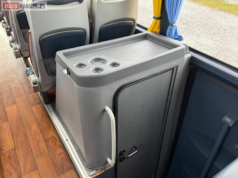 : klimatyzacja, video, WC, lodówka, caffebar, kabina sypialna, oświetlenie indywidualne, nawiewy dyszowe, podnóżki, stoliczki, siateczki, ABS, ASR, tempomat, retarder, CD, mikrofon, radio, fotele odchylane i rozsuwane, regulacja wysokości nadwozia, centralny zamek, podwójne szyby boczne, wspomaganie kierownicy, elektryczne lusterka, ogrzewanie stacjonarne, DVD, ESP
