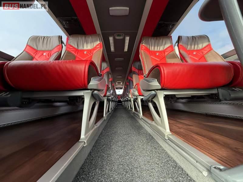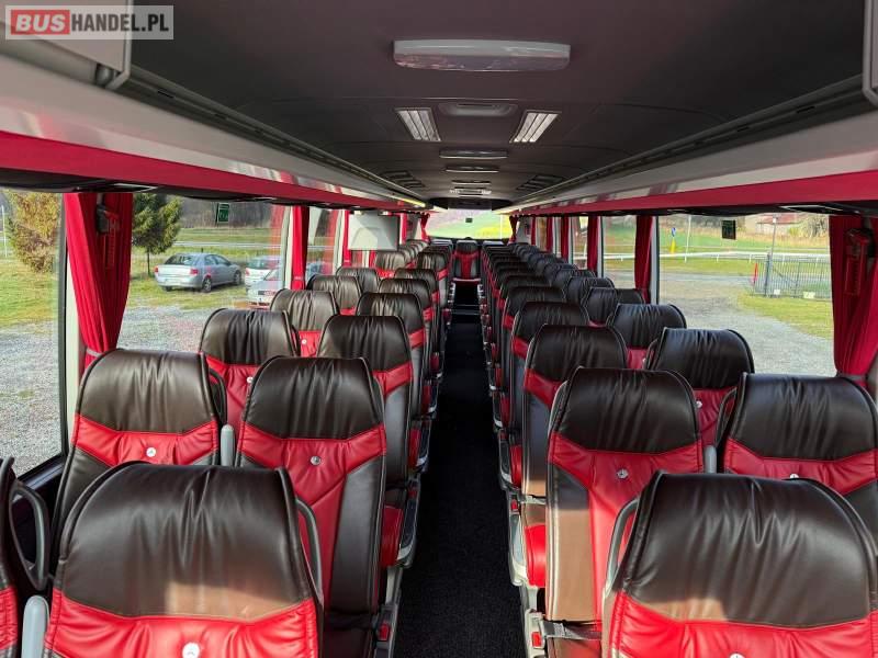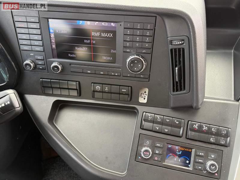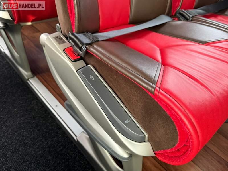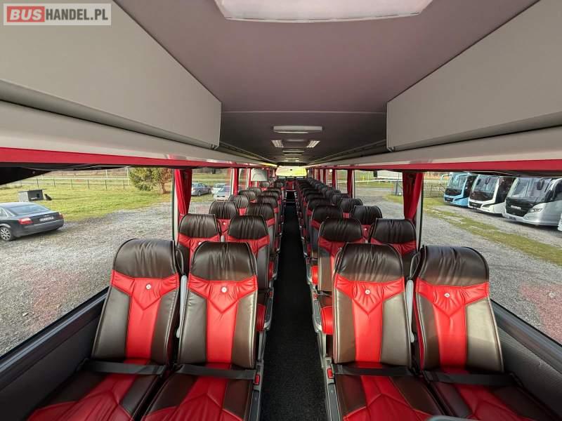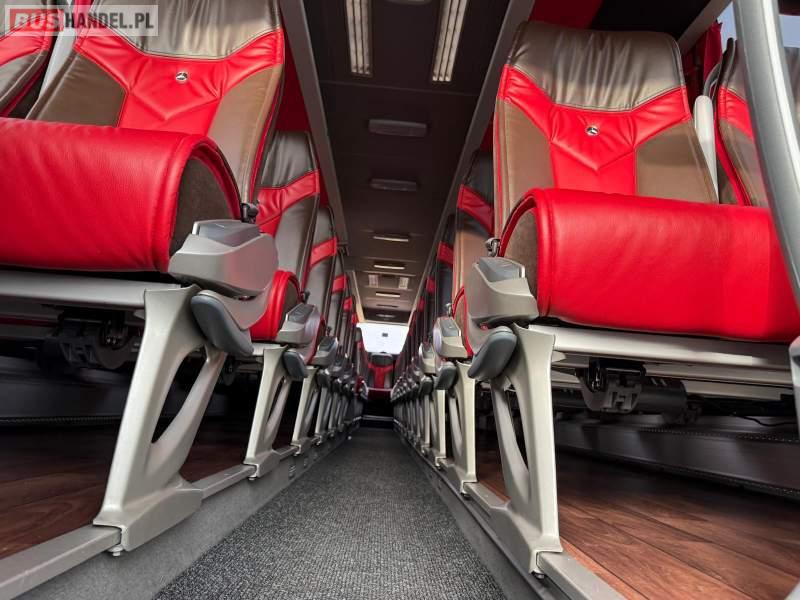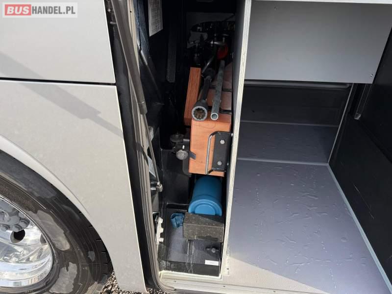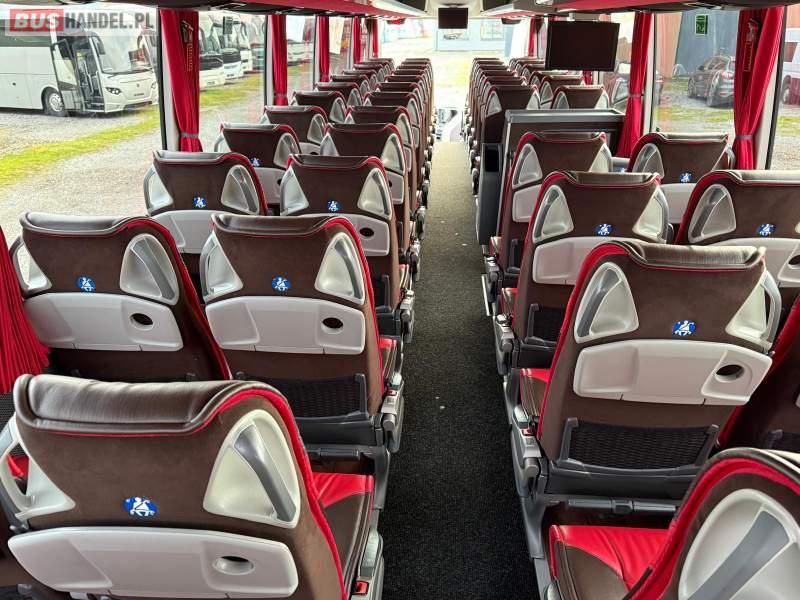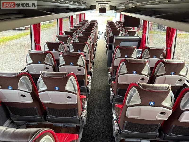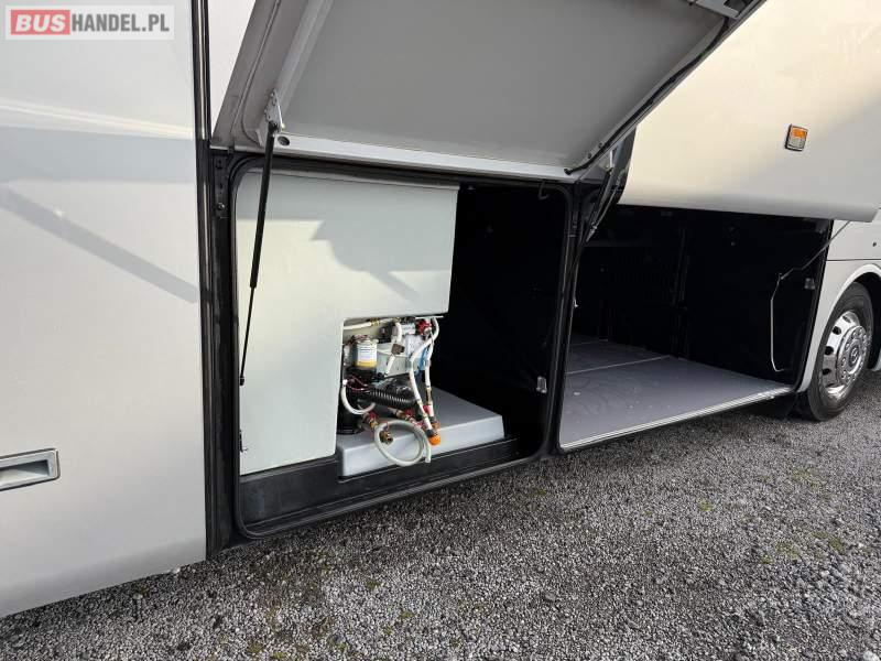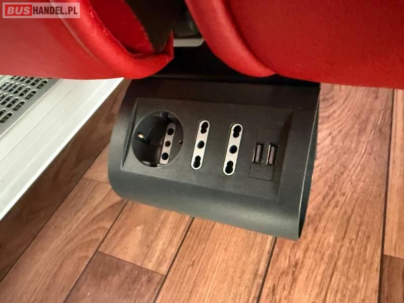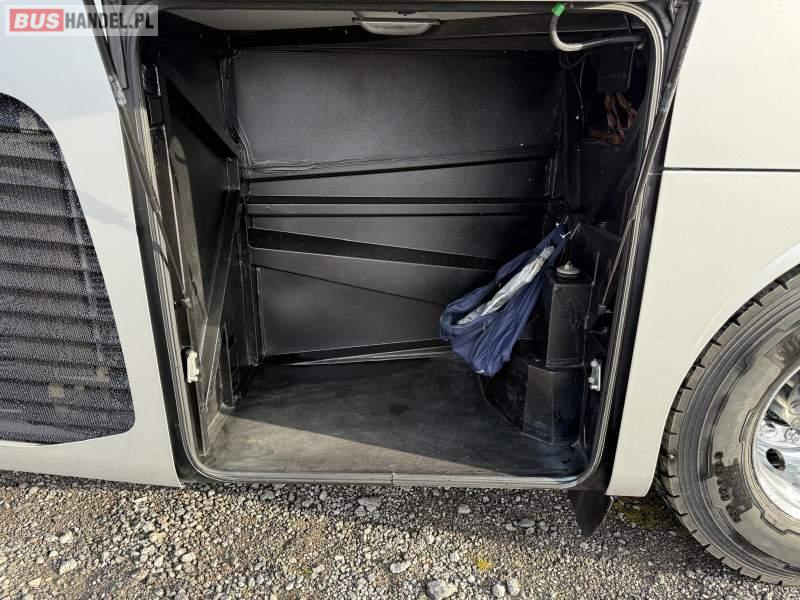 : video, WC, lodówka, kabina sypialna, oświetlenie indywidualne, nawiewy dyszowe, podnóżki, stoliczki, siateczki, ABS, ASR, tempomat, retarder, nawigacja, CD, mikrofon, radio, fotele odchylane i rozsuwane, sejf, regulacja wysokości nadwozia, centralny zamek, podwójne szyby boczne, wspomaganie kierownicy, aluminiowe felgi, elektryczne lusterka, ogrzewanie stacjonarne, DVD, hak holowniczy, ESP