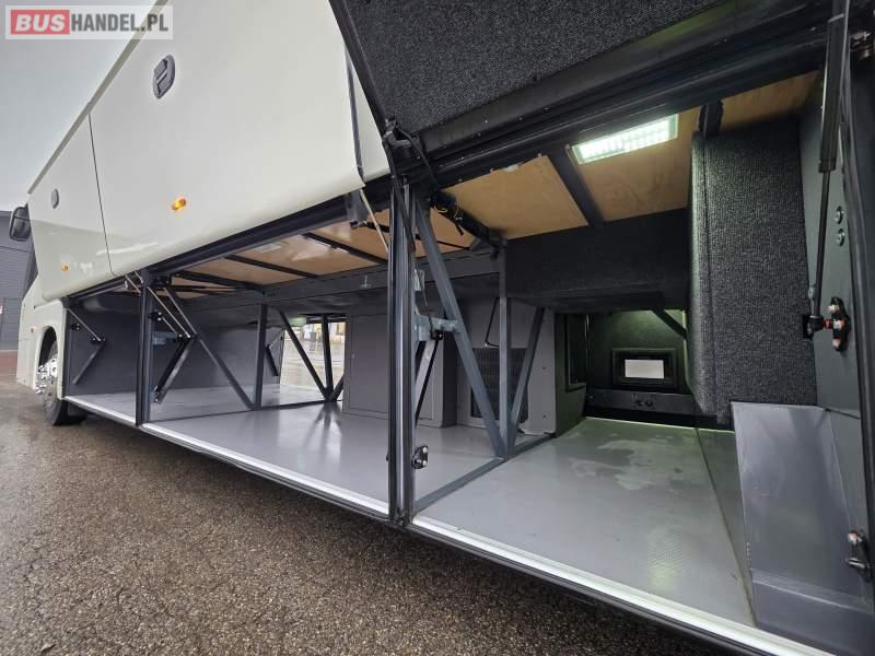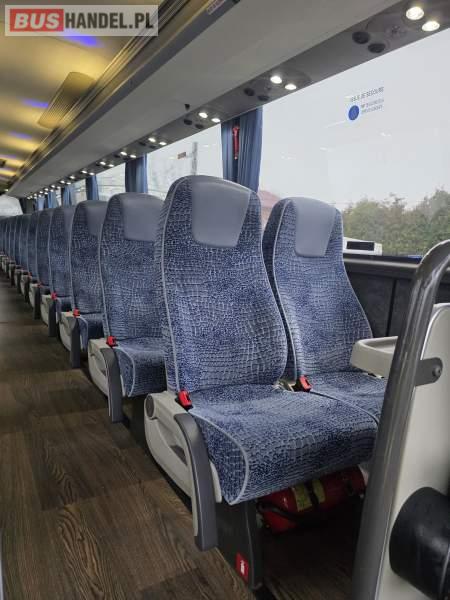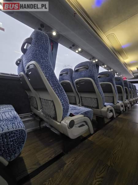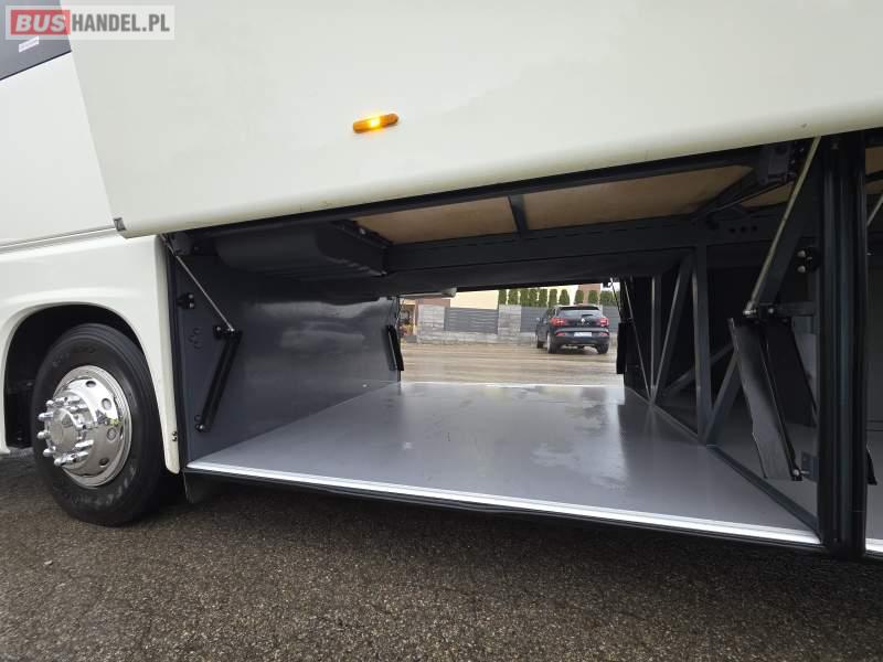 : WC, lodówka, kabina sypialna, oświetlenie indywidualne, nawiewy dyszowe, siateczki, ABS, ASR, tempomat, retarder, podnóżki, stoliczki, mikrofon, klimatyzacja, radio, sejf, regulacja wysokości nadwozia, centralny zamek, podwójne szyby boczne, wspomaganie kierownicy, elektryczne lusterka, fotele odchylane i rozsuwane, DVD, ogrzewanie stacjonarne, ESP