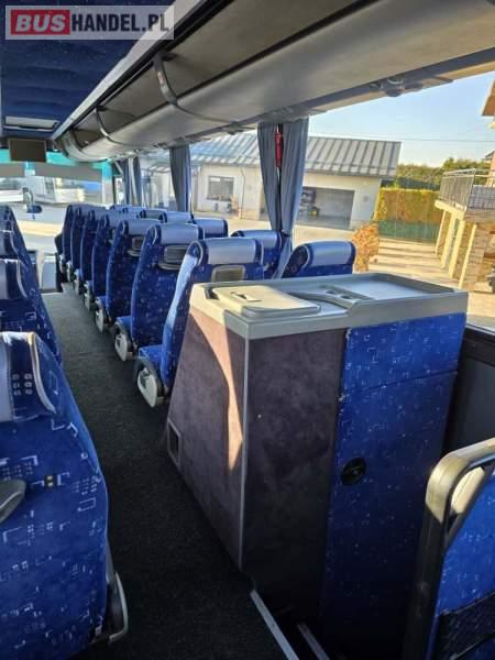 : WC, lodówka, fotele odchylane, oświetlenie indywidualne, nawiewy dyszowe, siateczki, ABS, ASR, tempomat, retarder, podnóżki, stoliczki, mikrofon, klimatyzacja, radio, sejf, regulacja wysokości nadwozia, centralny zamek, podwójne szyby boczne, wspomaganie kierownicy, elektryczne lusterka, ogrzewanie stacjonarne