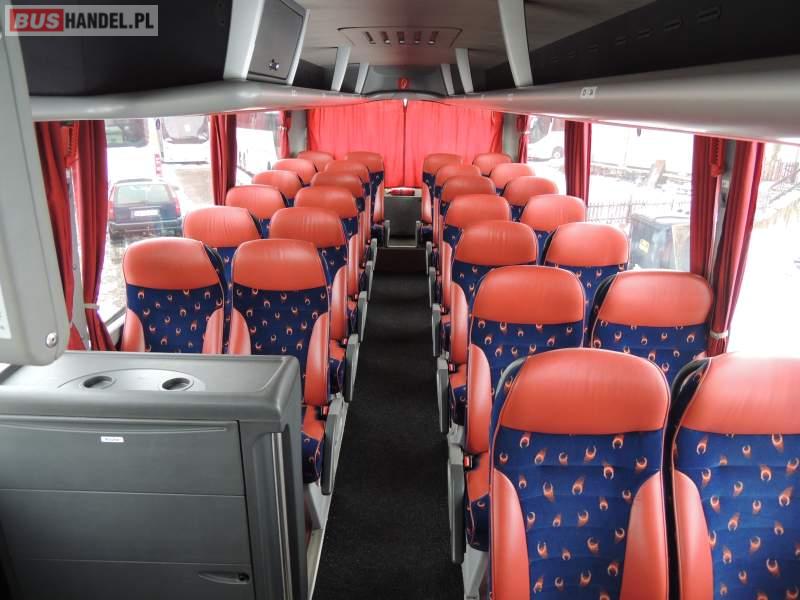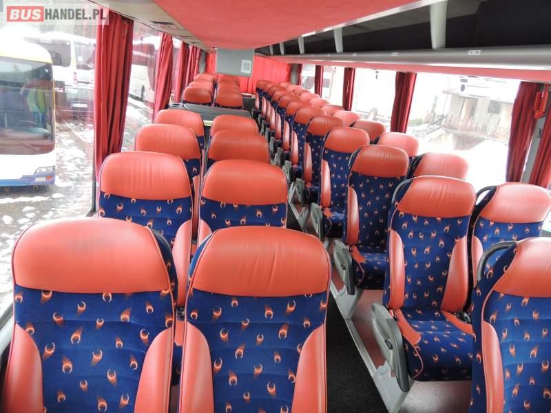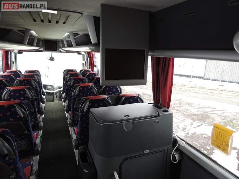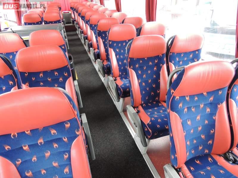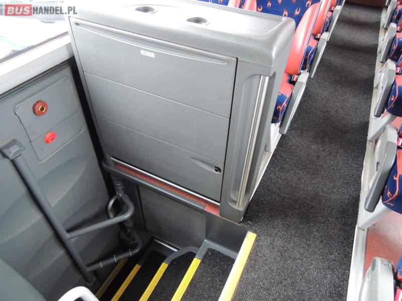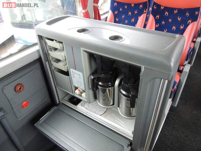 : video, WC, lodówka, caffebar, kabina sypialna, oświetlenie indywidualne, nawiewy dyszowe, siateczki, ABS, ASR, tempomat, retarder, CD, podnóżki, stoliczki, mikrofon, klimatyzacja, radio, regulacja wysokości nadwozia, centralny zamek, podwójne szyby boczne, wspomaganie kierownicy, elektryczne lusterka, fotele odchylane i rozsuwane, DVD, ogrzewanie stacjonarne, ESP