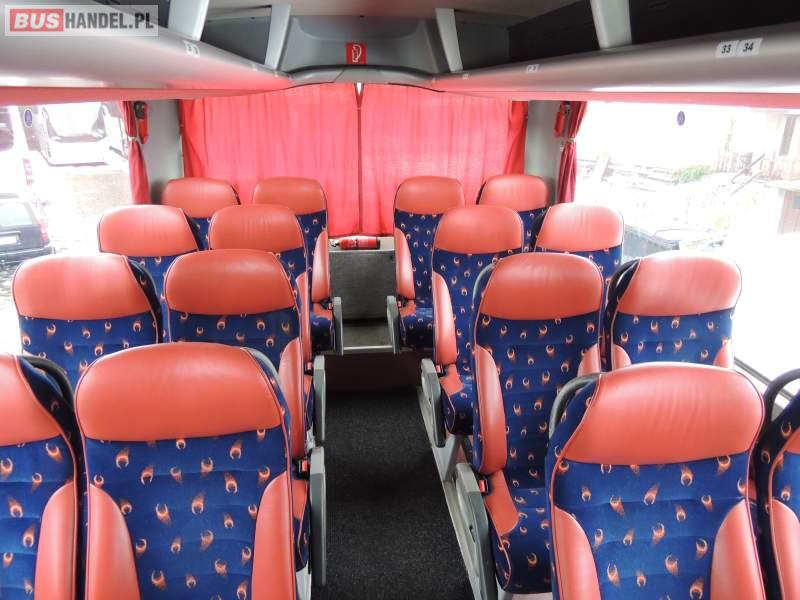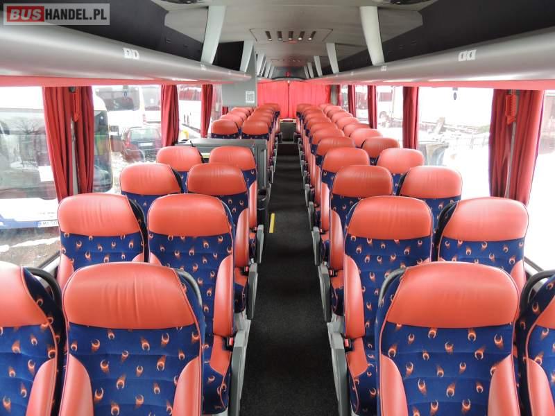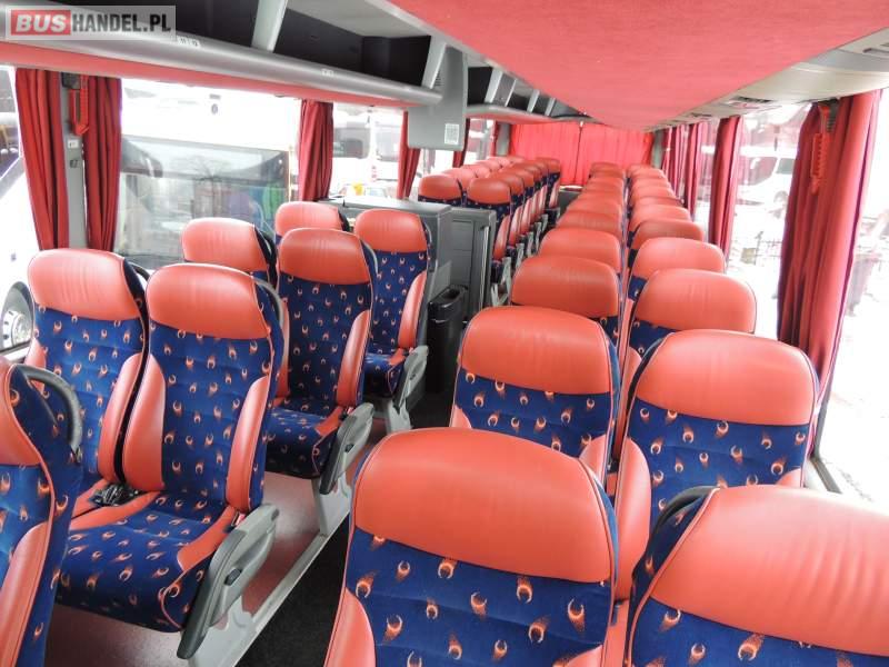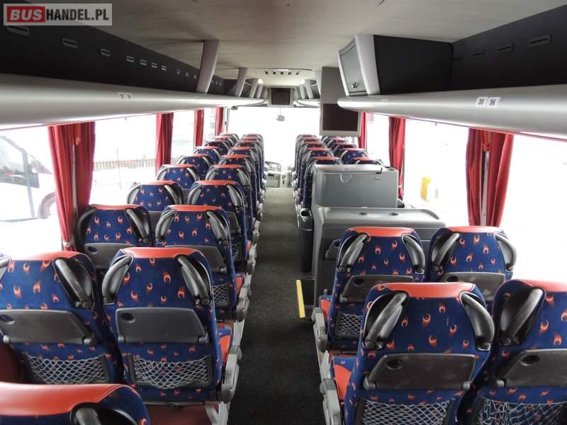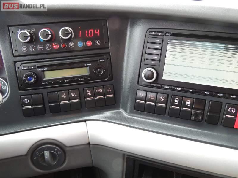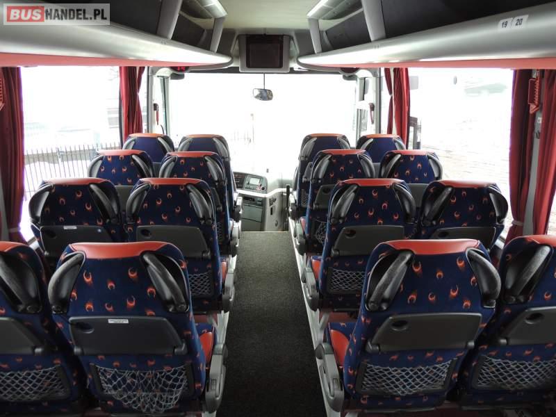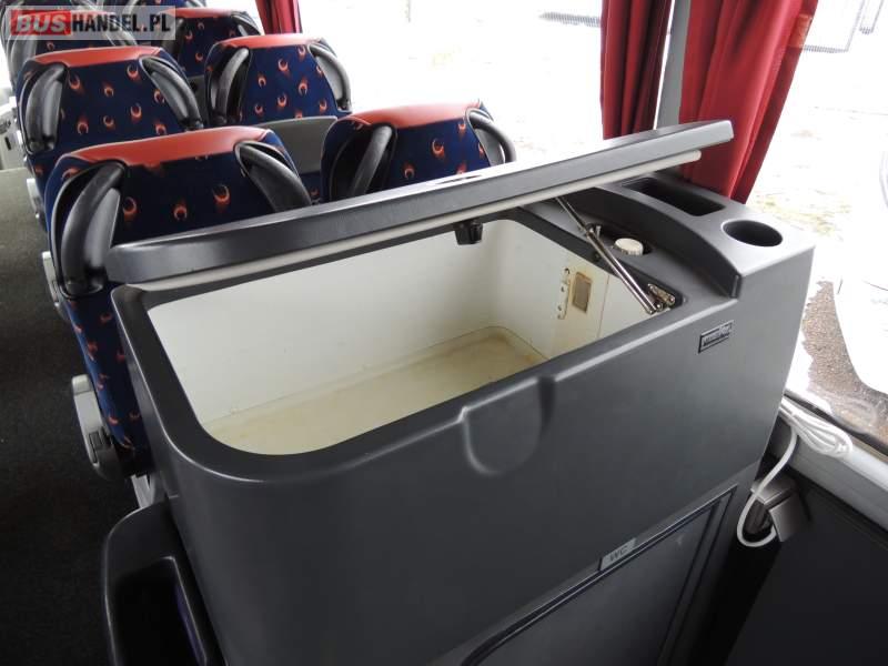 : video, WC, lodówka, caffebar, kabina sypialna, oświetlenie indywidualne, nawiewy dyszowe, siateczki, ABS, ASR, tempomat, retarder, CD, podnóżki, stoliczki, mikrofon, klimatyzacja, radio, regulacja wysokości nadwozia, centralny zamek, podwójne szyby boczne, wspomaganie kierownicy, elektryczne lusterka, fotele odchylane i rozsuwane, DVD, ogrzewanie stacjonarne, ESP