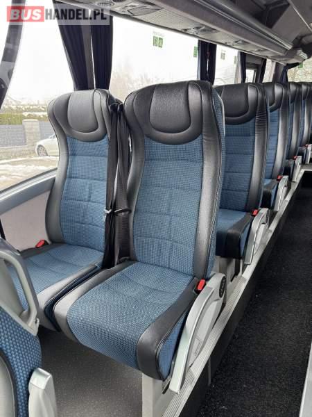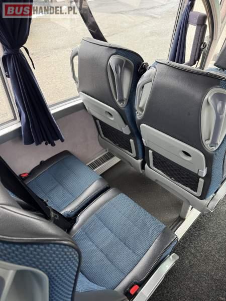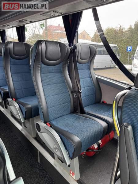 : oświetlenie indywidualne, nawiewy dyszowe, siateczki, ABS, ASR, tempomat, retarder, podnóżki, stoliczki, mikrofon, klimatyzacja, radio, centralny zamek, podwójne szyby boczne, wspomaganie kierownicy, elektryczne lusterka, fotele odchylane i rozsuwane, DVD, ogrzewanie stacjonarne