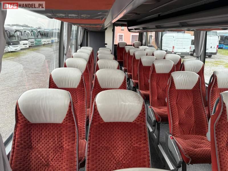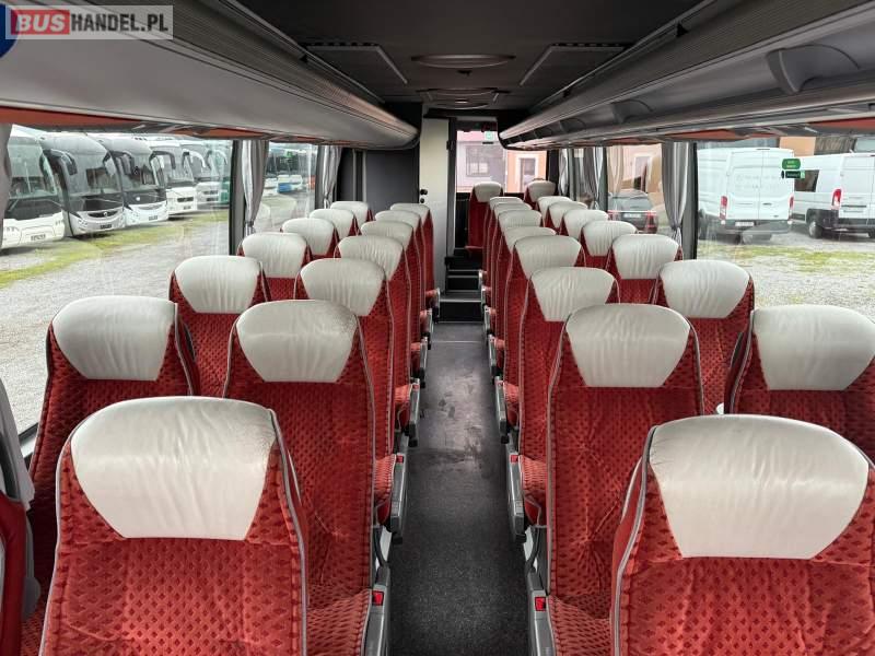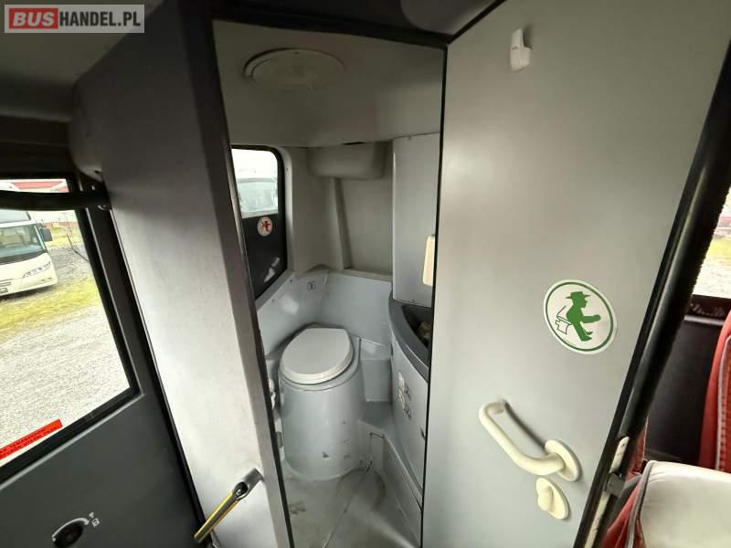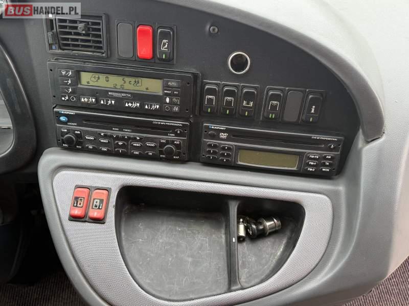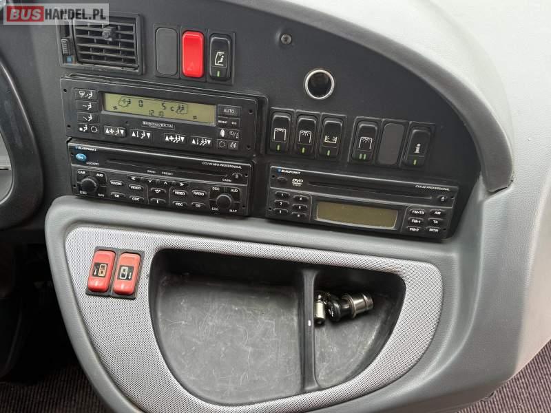 : video, WC, lodówka, caffebar, oświetlenie indywidualne, nawiewy dyszowe, siateczki, ABS, ASR, tempomat, retarder, CD, podnóżki, stoliczki, mikrofon, klimatyzacja, radio, regulacja wysokości nadwozia, centralny zamek, podwójne szyby boczne, wspomaganie kierownicy, elektryczne lusterka, fotele odchylane i rozsuwane, DVD, ogrzewanie stacjonarne, ESP