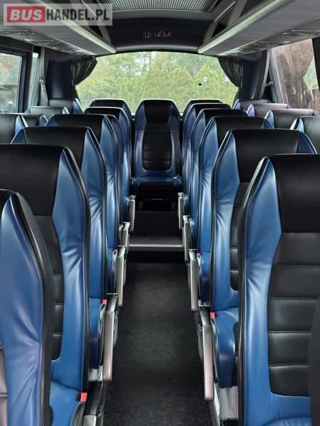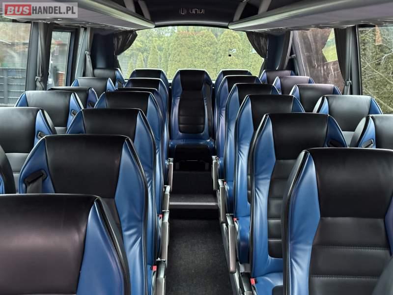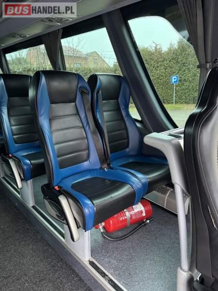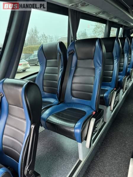 : lodówka, fotele odchylane, oświetlenie indywidualne, nawiewy dyszowe, siateczki, ABS, ASR, tempomat, retarder, podnóżki, stoliczki, mikrofon, klimatyzacja, radio, regulacja wysokości nadwozia, centralny zamek, podwójne szyby boczne, wspomaganie kierownicy, elektryczne lusterka, DVD, ogrzewanie stacjonarne