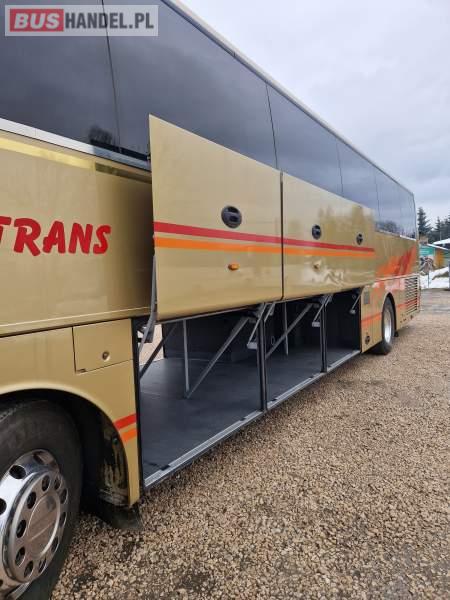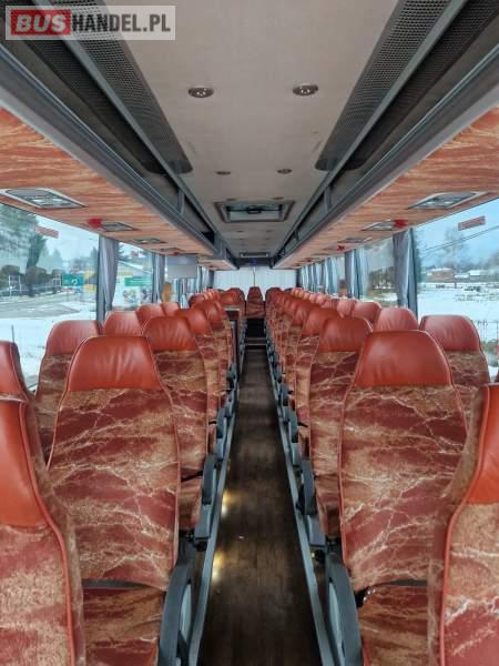 : video, WC, lodówka, caffebar, oświetlenie indywidualne, ABS, ASR, tempomat, retarder, podnóżki, mikrofon, klimatyzacja, regulacja wysokości nadwozia, podwójne szyby boczne, elektryczne lusterka, aluminiowe felgi, fotele odchylane i rozsuwane, DVD, ogrzewanie stacjonarne, hak holowniczy, ESP