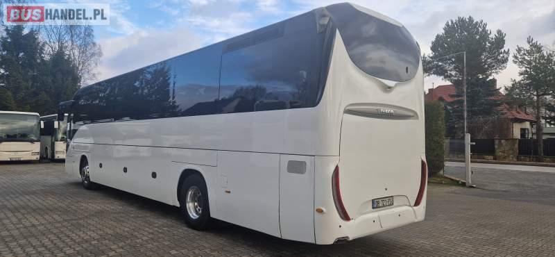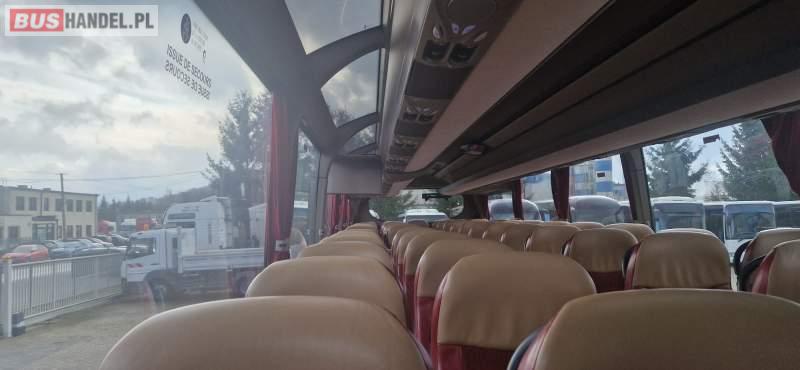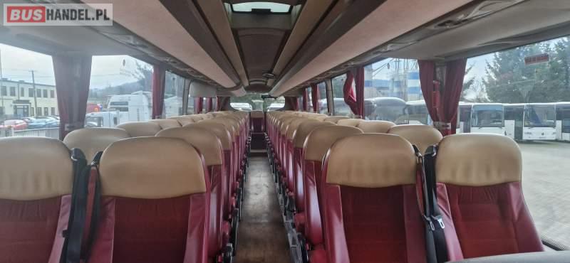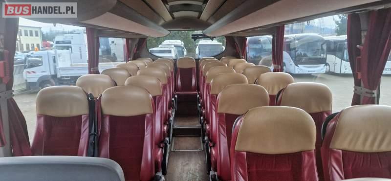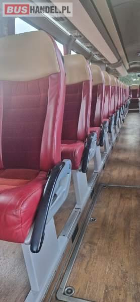 : video, lodówka, caffebar, fotele odchylane, oświetlenie indywidualne, siateczki, ABS, ASR, tempomat, retarder, CD, podnóżki, stoliczki, mikrofon, klimatyzacja, radio, regulacja wysokości nadwozia, centralny zamek, podwójne szyby boczne, wspomaganie kierownicy, elektryczne lusterka, aluminiowe felgi, DVD, ogrzewanie stacjonarne, ESP