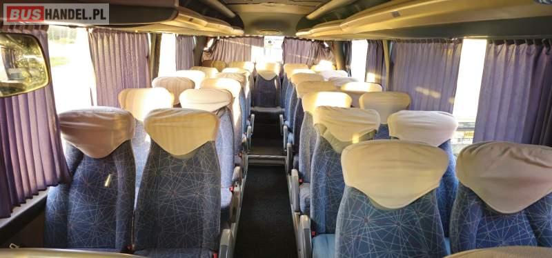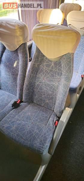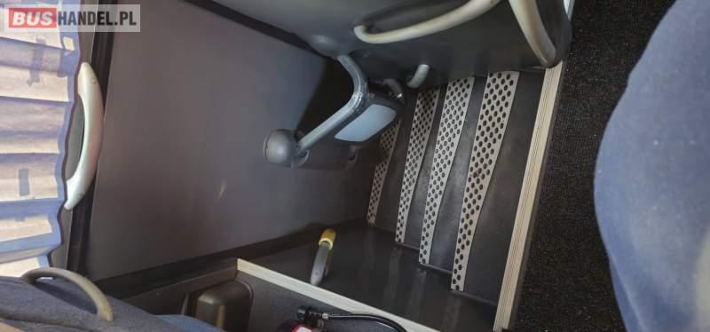 : klimatyzacja, video, lodówka, oświetlenie indywidualne, nawiewy dyszowe, podnóżki, stoliczki, siateczki, ABS, ASR, tempomat, retarder, telefon, nawigacja, CD, mikrofon, radio, fotele odchylane i rozsuwane, sejf, regulacja wysokości nadwozia, centralny zamek, podwójne szyby boczne, wspomaganie kierownicy, elektryczne lusterka, ogrzewanie stacjonarne, DVD, ESP