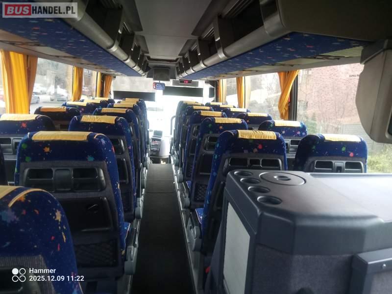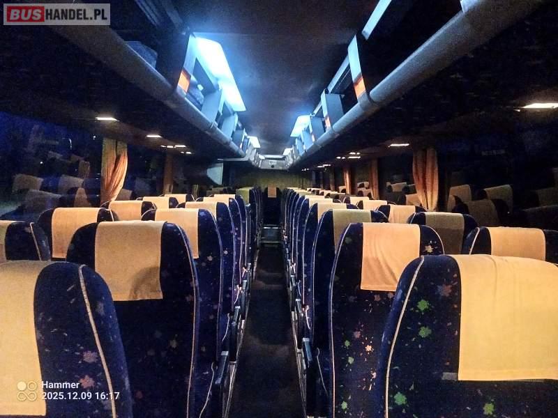 : klimatyzacja, video, WC, lodówka, caffebar, kabina sypialna, nawiewy dyszowe, fotele odchylane, podnóżki, stoliczki, siateczki, ABS, ASR, retarder, CD, mikrofon, radio, regulacja wysokości nadwozia, centralny zamek, podwójne szyby boczne, wspomaganie kierownicy, elektryczne lusterka, ogrzewanie stacjonarne, DVD, hak holowniczy