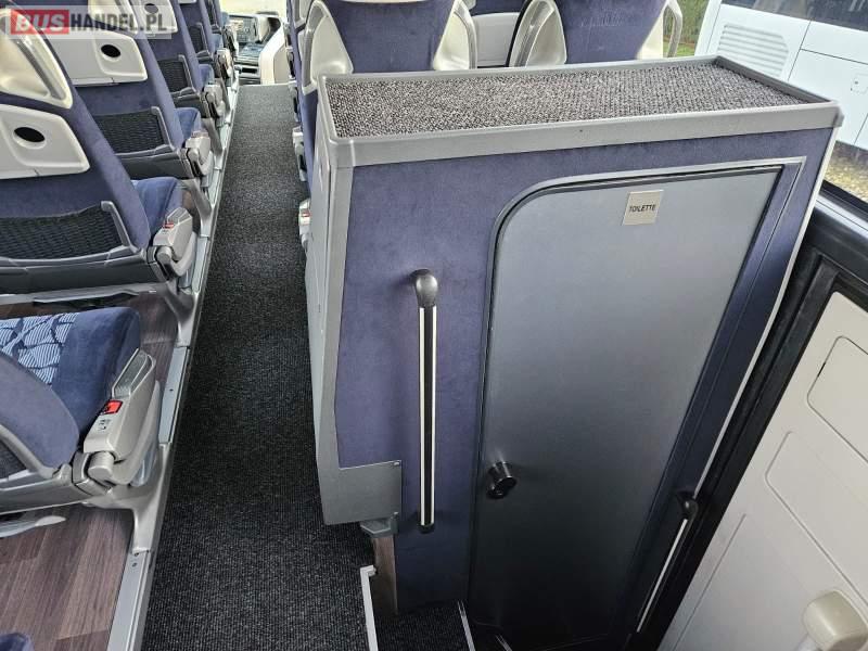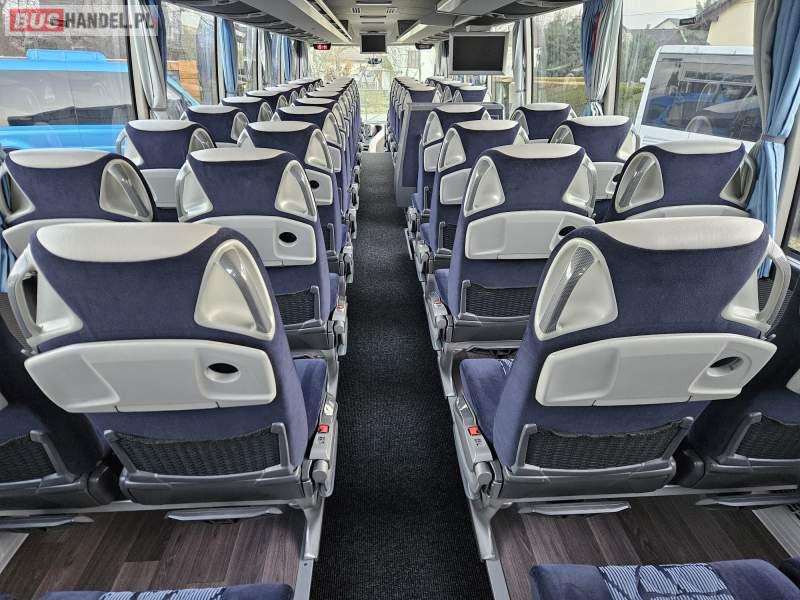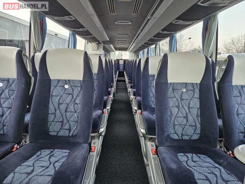 : video, WC, lodówka, oświetlenie indywidualne, nawiewy dyszowe, siateczki, ABS, ASR, tempomat, retarder, CD, stoliczki, mikrofon, klimatyzacja, regulacja wysokości nadwozia, centralny zamek, podwójne szyby boczne, wspomaganie kierownicy, elektryczne lusterka, fotele odchylane i rozsuwane, DVD, ogrzewanie stacjonarne, ESP