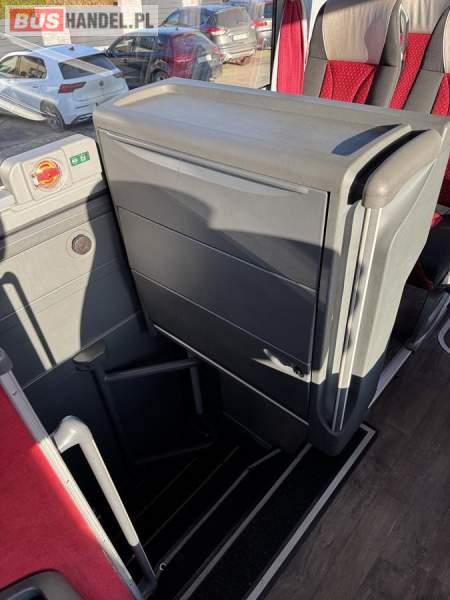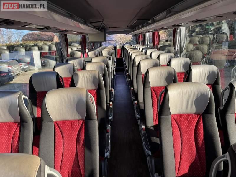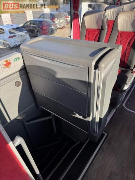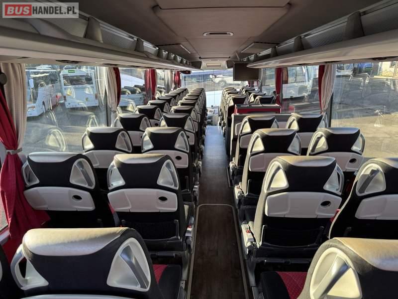 : WC, lodówka, caffebar, kabina sypialna, oświetlenie indywidualne, nawiewy dyszowe, siateczki, ABS, ASR, tempomat, retarder, podnóżki, stoliczki, mikrofon, klimatyzacja, radio, sejf, regulacja wysokości nadwozia, centralny zamek, podwójne szyby boczne, wspomaganie kierownicy, elektryczne lusterka, fotele odchylane i rozsuwane, DVD, ogrzewanie stacjonarne, ESP