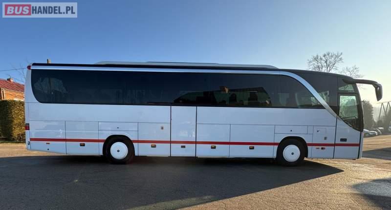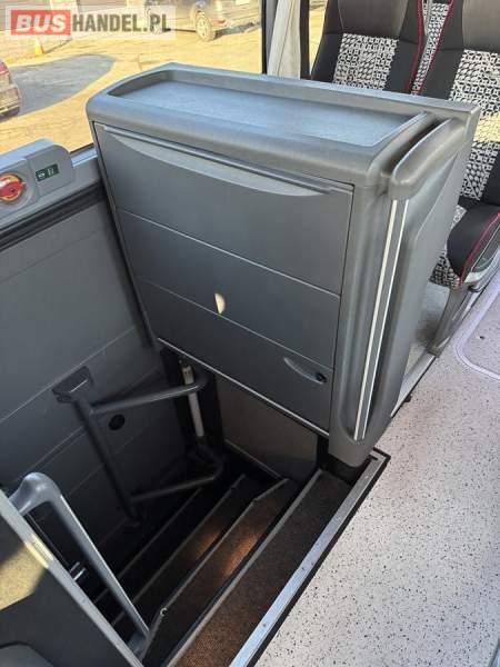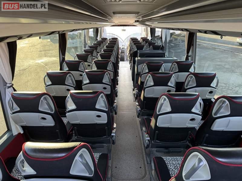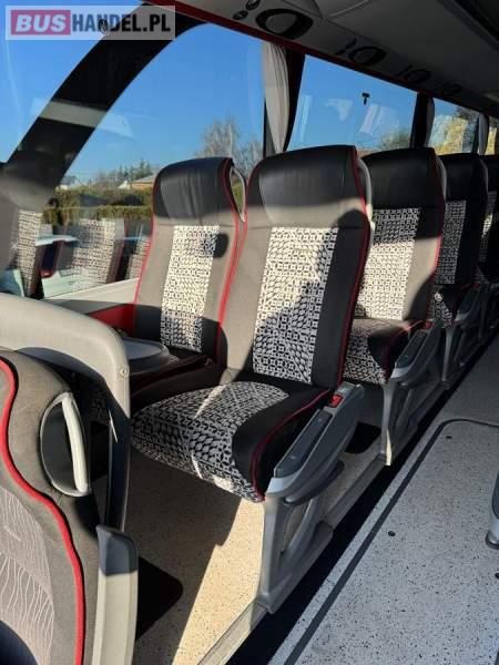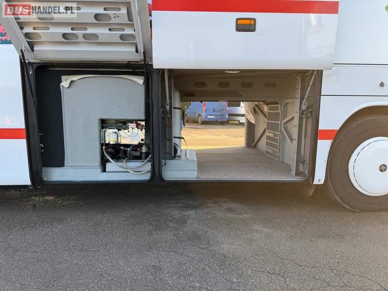 : WC, lodówka, caffebar, oświetlenie indywidualne, nawiewy dyszowe, siateczki, ABS, ASR, tempomat, retarder, podnóżki, stoliczki, mikrofon, klimatyzacja, radio, sejf, regulacja wysokości nadwozia, centralny zamek, podwójne szyby boczne, wspomaganie kierownicy, elektryczne lusterka, fotele odchylane i rozsuwane, DVD, ogrzewanie stacjonarne, ESP