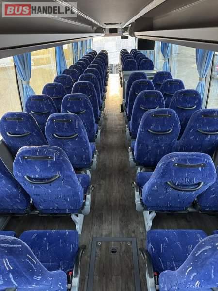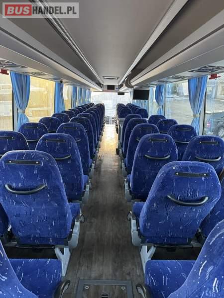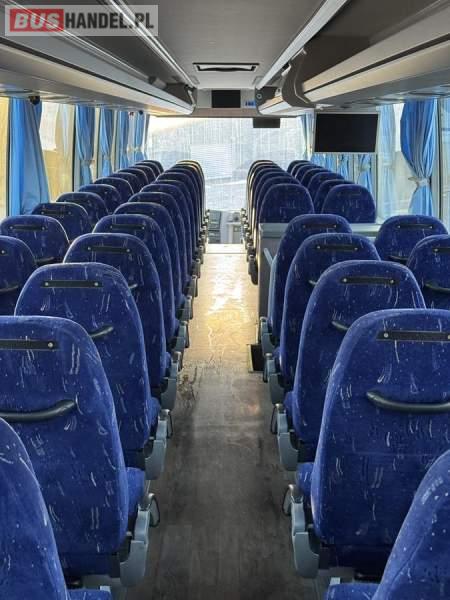 : klimatyzacja, WC, lodówka, caffebar, kabina sypialna, oświetlenie indywidualne, nawiewy dyszowe, fotele odchylane, podnóżki, ABS, ASR, tempomat, retarder, mikrofon, radio, regulacja wysokości nadwozia, centralny zamek, podwójne szyby boczne, wspomaganie kierownicy, elektryczne lusterka, ogrzewanie stacjonarne, DVD, ESP