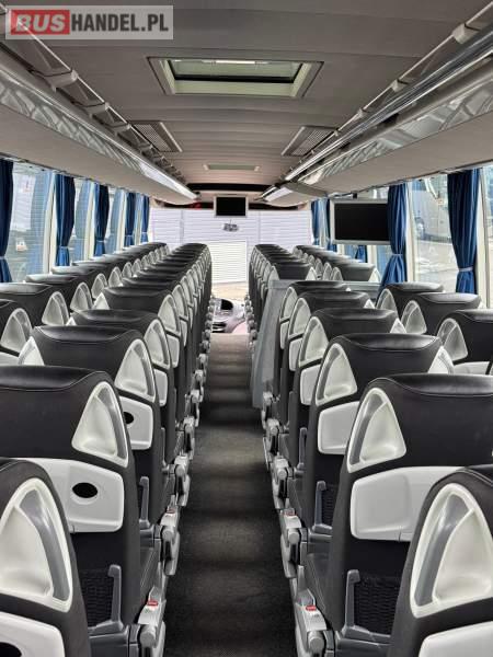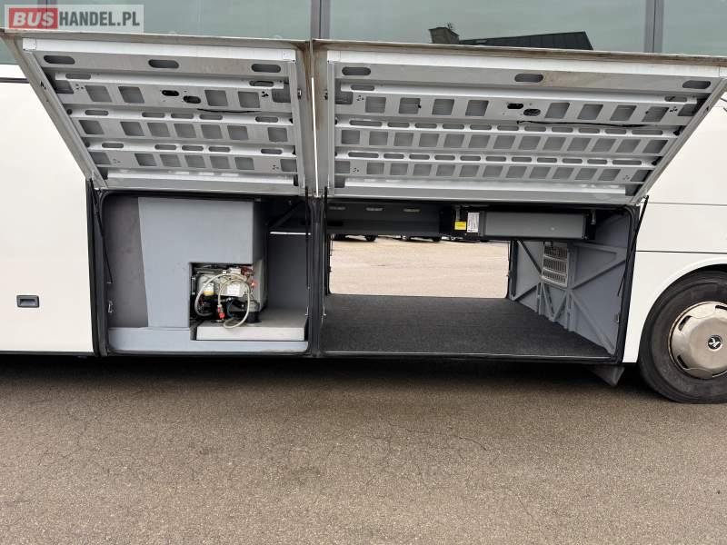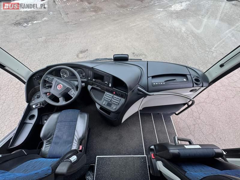 : klimatyzacja, WC, lodówka, caffebar, oświetlenie indywidualne, nawiewy dyszowe, podnóżki, stoliczki, siateczki, ABS, ASR, tempomat, retarder, mikrofon, radio, fotele odchylane i rozsuwane, sejf, regulacja wysokości nadwozia, centralny zamek, podwójne szyby boczne, wspomaganie kierownicy, elektryczne lusterka, ogrzewanie stacjonarne, DVD, ESP