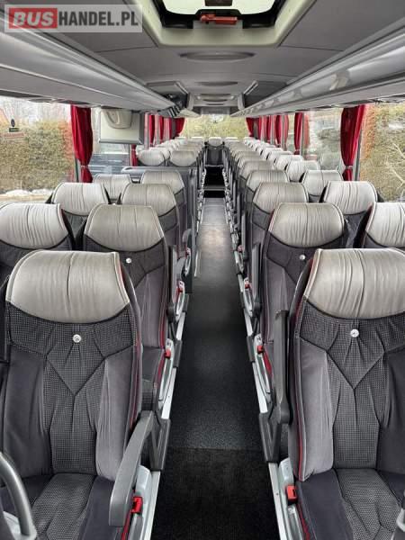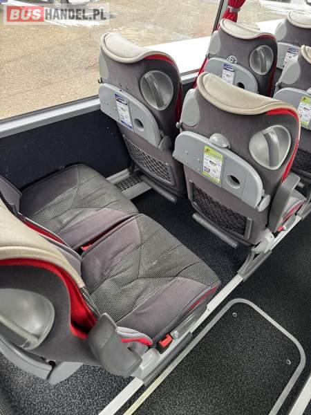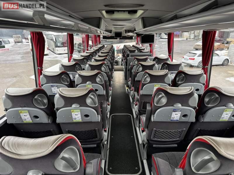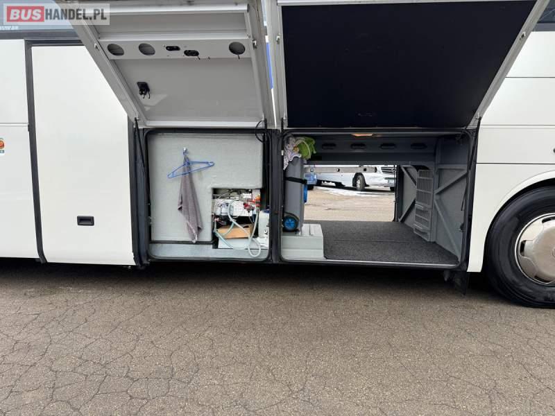 : klimatyzacja, WC, lodówka, caffebar, kabina sypialna, oświetlenie indywidualne, nawiewy dyszowe, fotele odchylane, podnóżki, stoliczki, siateczki, ABS, ASR, tempomat, retarder, CD, mikrofon, radio, wyświetlacz matrix, regulacja wysokości nadwozia, centralny zamek, podwójne szyby boczne, wspomaganie kierownicy, elektryczne lusterka, ogrzewanie stacjonarne, DVD, ESP
