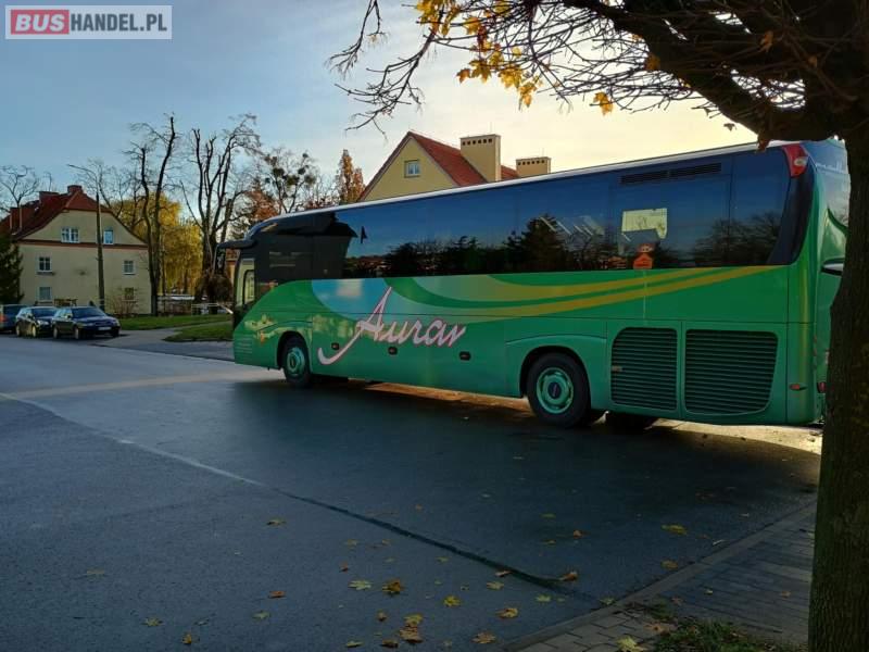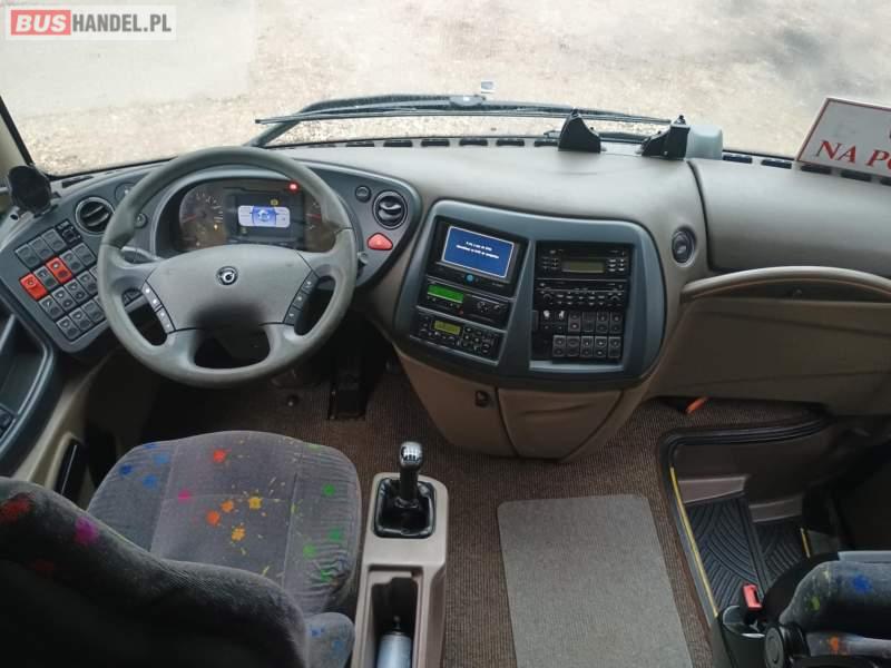 : klimatyzacja, WC, lodówka, caffebar, oświetlenie indywidualne, nawiewy dyszowe, podnóżki, stoliczki, siateczki, ABS, ASR, tempomat, retarder, CD, mikrofon, radio, fotele odchylane i rozsuwane, wyświetlacz matrix, regulacja wysokości nadwozia, centralny zamek, podwójne szyby boczne, wspomaganie kierownicy, elektryczne lusterka, ogrzewanie stacjonarne, DVD, ESP