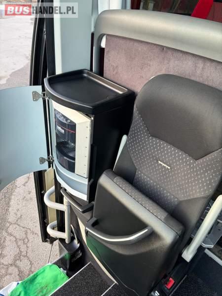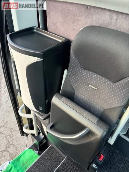 : WC, lodówka, caffebar, oświetlenie indywidualne, nawiewy dyszowe, siateczki, ABS, ASR, tempomat, retarder, CD, podnóżki, stoliczki, mikrofon, klimatyzacja, radio, regulacja wysokości nadwozia, centralny zamek, podwójne szyby boczne, wspomaganie kierownicy, elektryczne lusterka, fotele odchylane i rozsuwane, DVD, ogrzewanie stacjonarne, ESP