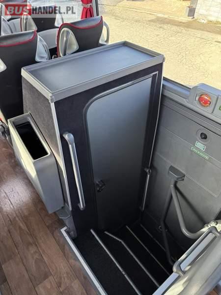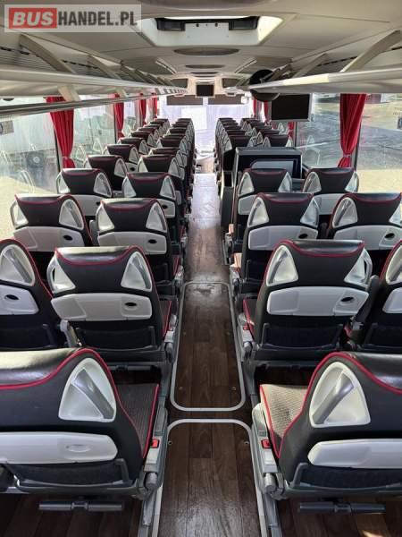 : klimatyzacja, WC, lodówka, oświetlenie indywidualne, nawiewy dyszowe, fotele odchylane, podnóżki, stoliczki, siateczki, ABS, ASR, tempomat, retarder, CD, mikrofon, radio, wyświetlacz matrix, regulacja wysokości nadwozia, centralny zamek, podwójne szyby boczne, wspomaganie kierownicy, elektryczne lusterka, ogrzewanie stacjonarne, DVD, ESP