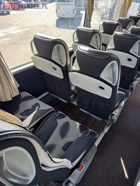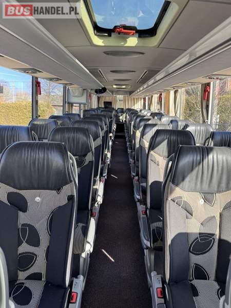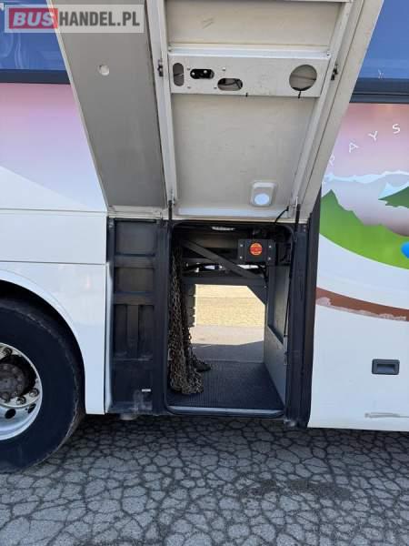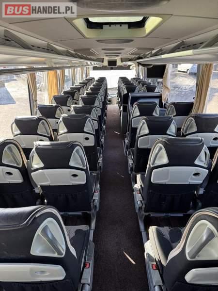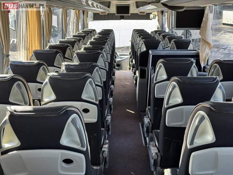 : lodówka, caffebar, fotele odchylane, oświetlenie indywidualne, nawiewy dyszowe, siateczki, ABS, ASR, tempomat, retarder, CD, podnóżki, stoliczki, mikrofon, klimatyzacja, radio, wyświetlacz matrix, regulacja wysokości nadwozia, centralny zamek, podwójne szyby boczne, wspomaganie kierownicy, elektryczne lusterka, DVD, ogrzewanie stacjonarne, ESP