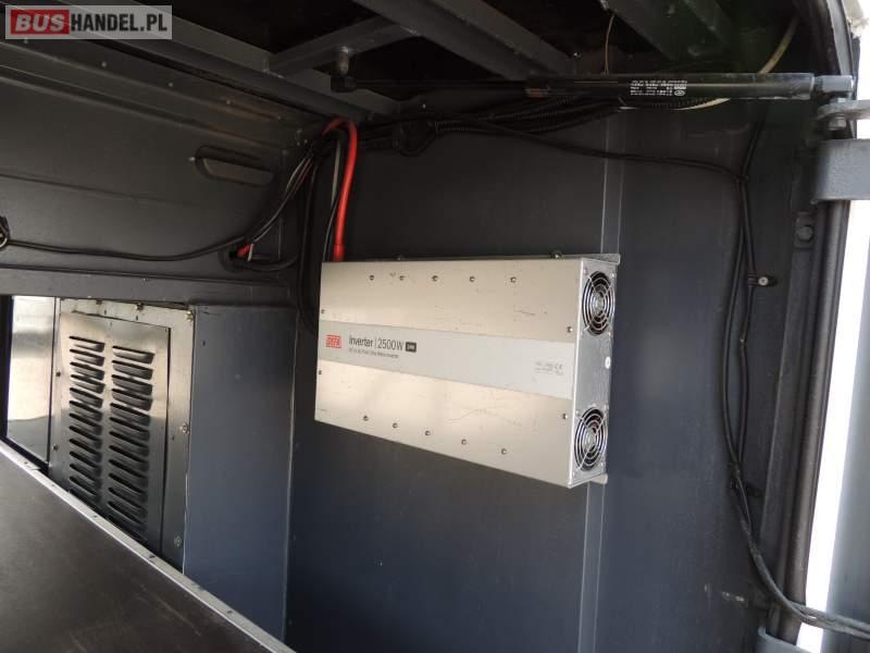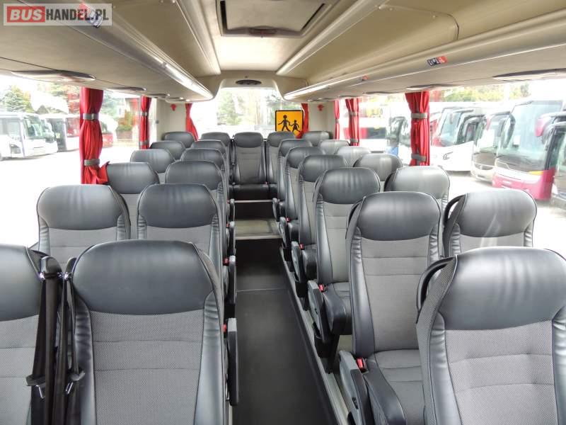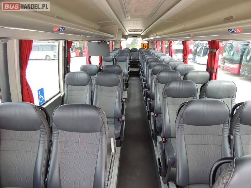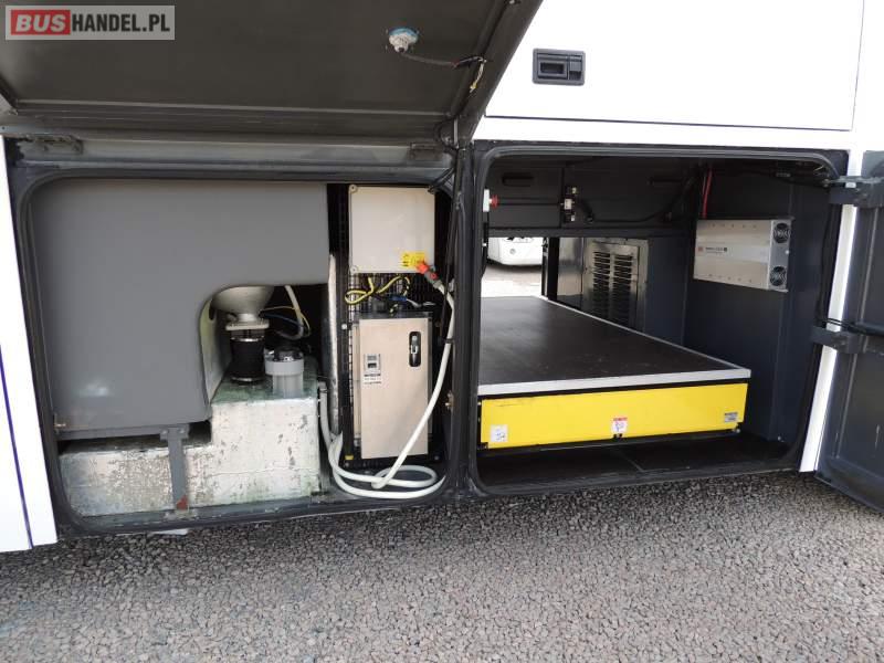 : video, WC, lodówka, oświetlenie indywidualne, nawiewy dyszowe, ABS, ASR, tempomat, retarder, CD, klimatyzacja, radio, rampa dla inwalidów, regulacja wysokości nadwozia, centralny zamek, podwójne szyby boczne, wspomaganie kierownicy, elektryczne lusterka, fotele odchylane i rozsuwane, DVD, ogrzewanie stacjonarne, ESP