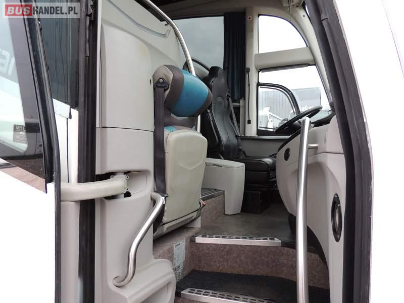 : video, WC, lodówka, caffebar, kabina sypialna, oświetlenie indywidualne, nawiewy dyszowe, siateczki, ABS, ASR, tempomat, retarder, nawigacja, CD, podnóżki, stoliczki, mikrofon, klimatyzacja, radio, sejf, regulacja wysokości nadwozia, centralny zamek, podwójne szyby boczne, wspomaganie kierownicy, aluminiowe felgi, fotele odchylane i rozsuwane, DVD, ogrzewanie stacjonarne, ESP