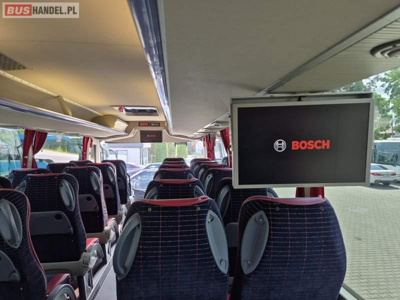 : klimatyzacja, video, WC, lodówka, caffebar, kabina sypialna, oświetlenie indywidualne, fotele odchylane, podnóżki, stoliczki, siateczki, ABS, tempomat, retarder, nawigacja, CD, mikrofon, radio, rampa dla inwalidów, regulacja wysokości nadwozia, centralny zamek, podwójne szyby boczne, wspomaganie kierownicy, elektryczne lusterka, ogrzewanie stacjonarne, DVD