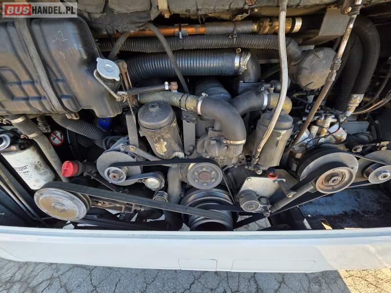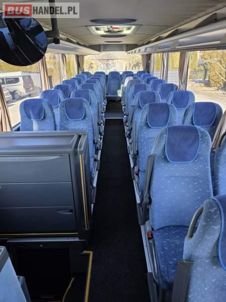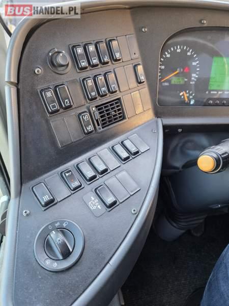 : lodówka, caffebar, oświetlenie indywidualne, nawiewy dyszowe, siateczki, ABS, ASR, tempomat, retarder, podnóżki, stoliczki, mikrofon, klimatyzacja, radio, sejf, centralny zamek, podwójne szyby boczne, wspomaganie kierownicy, elektryczne lusterka, fotele odchylane i rozsuwane, ogrzewanie stacjonarne, ESP