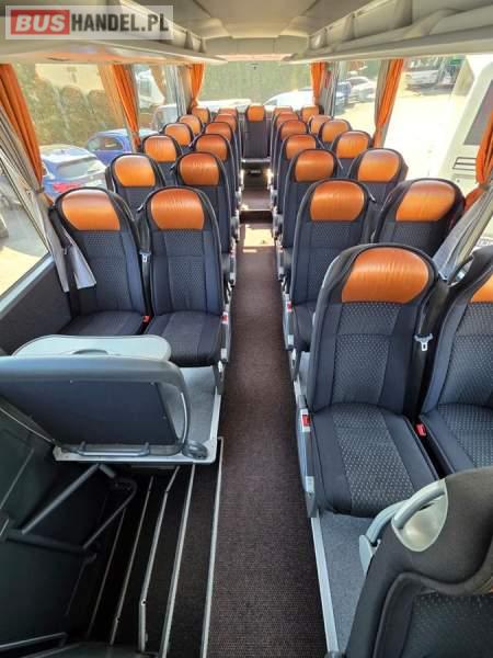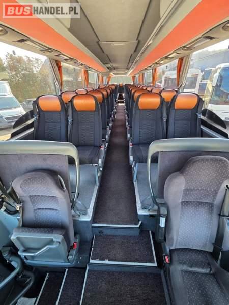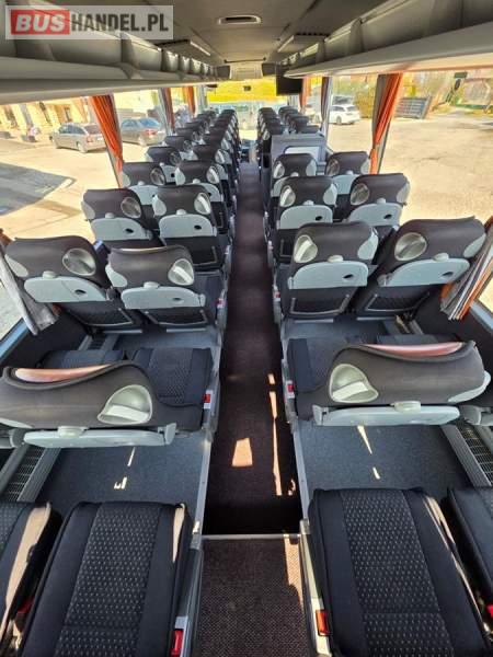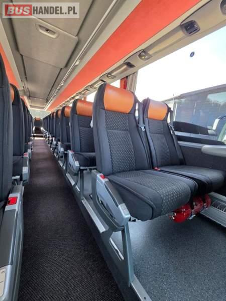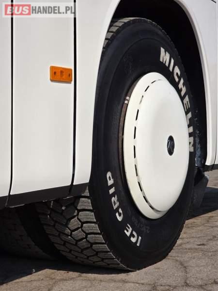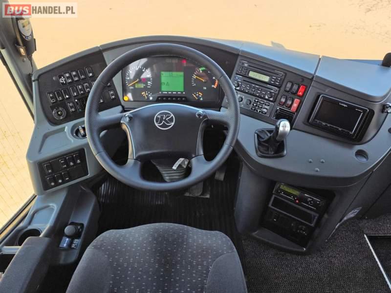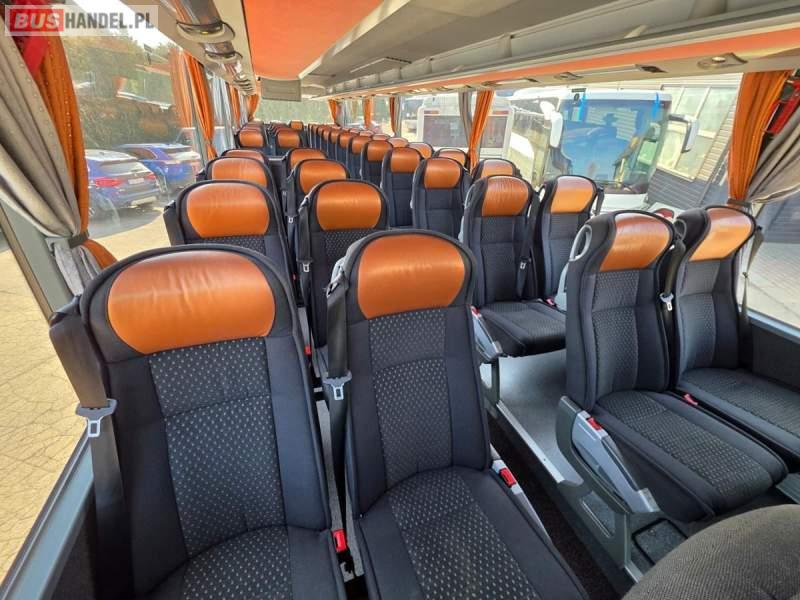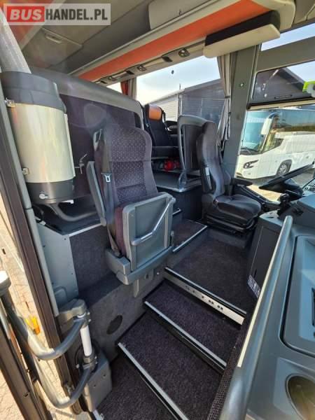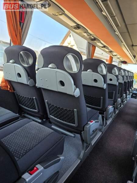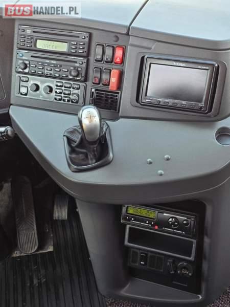 : klimatyzacja, WC, lodówka, caffebar, oświetlenie indywidualne, nawiewy dyszowe, podnóżki, stoliczki, siateczki, ABS, ASR, tempomat, retarder, mikrofon, radio, fotele odchylane i rozsuwane, regulacja wysokości nadwozia, centralny zamek, podwójne szyby boczne, wspomaganie kierownicy, elektryczne lusterka, ogrzewanie stacjonarne, DVD, ESP