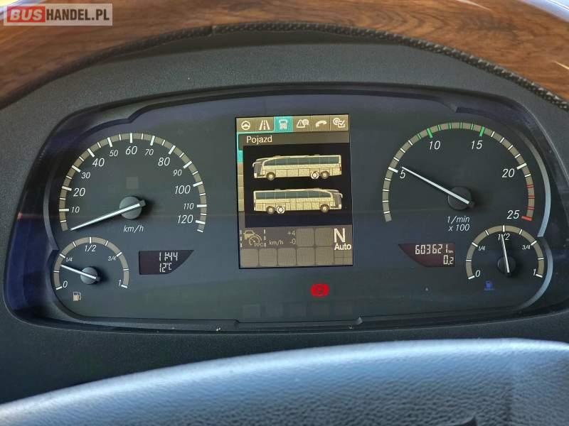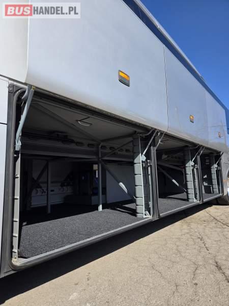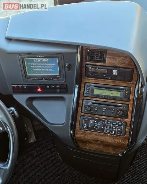 : klimatyzacja, WC, lodówka, caffebar, kabina sypialna, oświetlenie indywidualne, nawiewy dyszowe, podnóżki, stoliczki, siateczki, ABS, ASR, tempomat, retarder, mikrofon, radio, fotele odchylane i rozsuwane, sejf, regulacja wysokości nadwozia, centralny zamek, podwójne szyby boczne, wspomaganie kierownicy, elektryczne lusterka, ogrzewanie stacjonarne, DVD, ESP