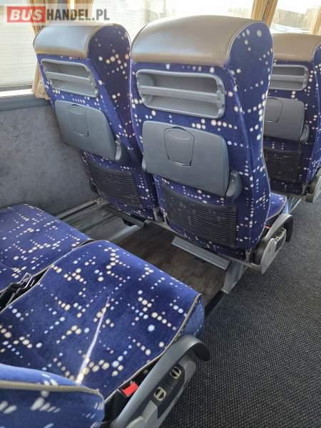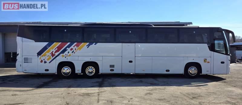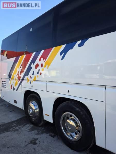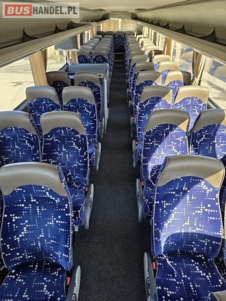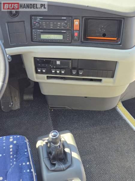 : klimatyzacja, WC, lodówka, caffebar, kabina sypialna, oświetlenie indywidualne, nawiewy dyszowe, podnóżki, stoliczki, siateczki, ABS, ASR, tempomat, retarder, mikrofon, radio, fotele odchylane i rozsuwane, sejf, regulacja wysokości nadwozia, centralny zamek, podwójne szyby boczne, wspomaganie kierownicy, elektryczne lusterka, ogrzewanie stacjonarne, DVD, ESP