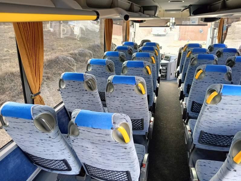 : klimatyzacja, video, caffebar, oświetlenie indywidualne, nawiewy dyszowe, fotele odchylane, siateczki, ABS, ASR, tempomat, retarder, CD, mikrofon, radio, regulacja wysokości nadwozia, podwójne szyby boczne, wspomaganie kierownicy, aluminiowe felgi, elektryczne lusterka, ogrzewanie stacjonarne, DVD, hak holowniczy, ESP