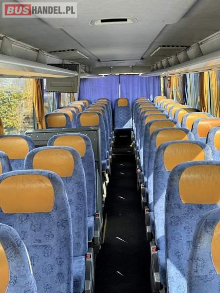 : WC, lodówka, caffebar, kabina sypialna, fotele odchylane, oświetlenie indywidualne, nawiewy dyszowe, siateczki, ABS, ASR, retarder, CD, podnóżki, stoliczki, mikrofon, radio, regulacja wysokości nadwozia, centralny zamek, podwójne szyby boczne, wspomaganie kierownicy, elektryczne lusterka, ogrzewanie stacjonarne, ESP