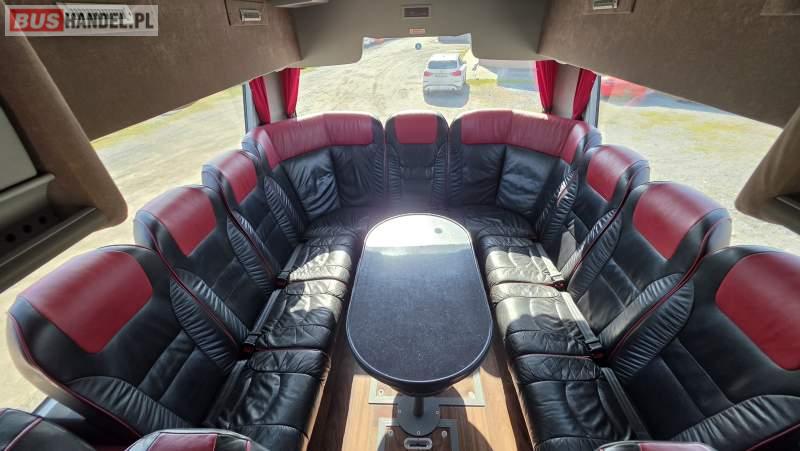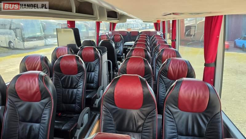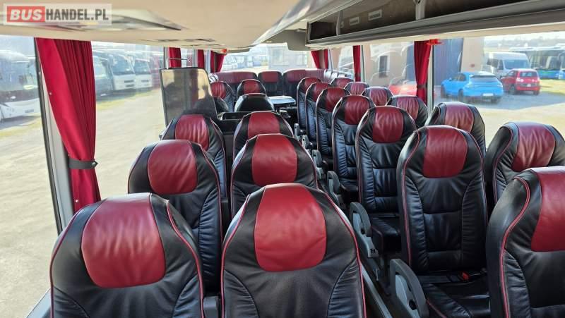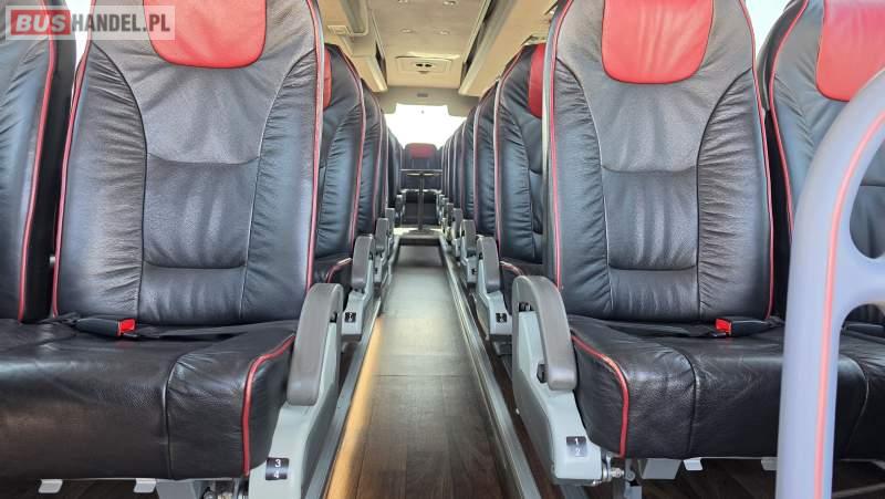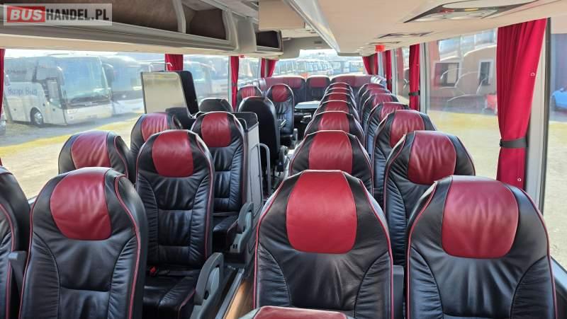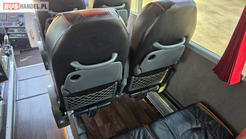 : video, WC, lodówka, caffebar, oświetlenie indywidualne, nawiewy dyszowe, siateczki, ABS, ASR, tempomat, retarder, CD, podnóżki, stoliczki, mikrofon, klimatyzacja, radio, kuchenka mikrofalowa, regulacja wysokości nadwozia, centralny zamek, podwójne szyby boczne, wspomaganie kierownicy, elektryczne lusterka, fotele odchylane i rozsuwane, DVD, ogrzewanie stacjonarne, ESP
