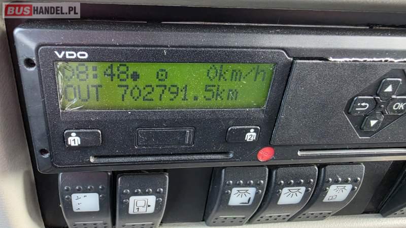 : klimatyzacja, video, lodówka, kabina sypialna, oświetlenie indywidualne, nawiewy dyszowe, podnóżki, stoliczki, siateczki, ABS, ASR, tempomat, retarder, CD, mikrofon, radio, fotele odchylane i rozsuwane, sejf, regulacja wysokości nadwozia, centralny zamek, podwójne szyby boczne, wspomaganie kierownicy, aluminiowe felgi, elektryczne lusterka, ogrzewanie stacjonarne, DVD, ESP